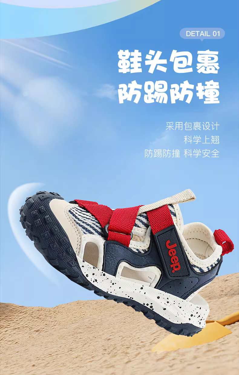 - Dép thể thao trẻ em Jeep kiểu mùa hè, giày nước mũi kín, mẫu mới hè 2025, đế mềm, giày đi biển cho bé trai