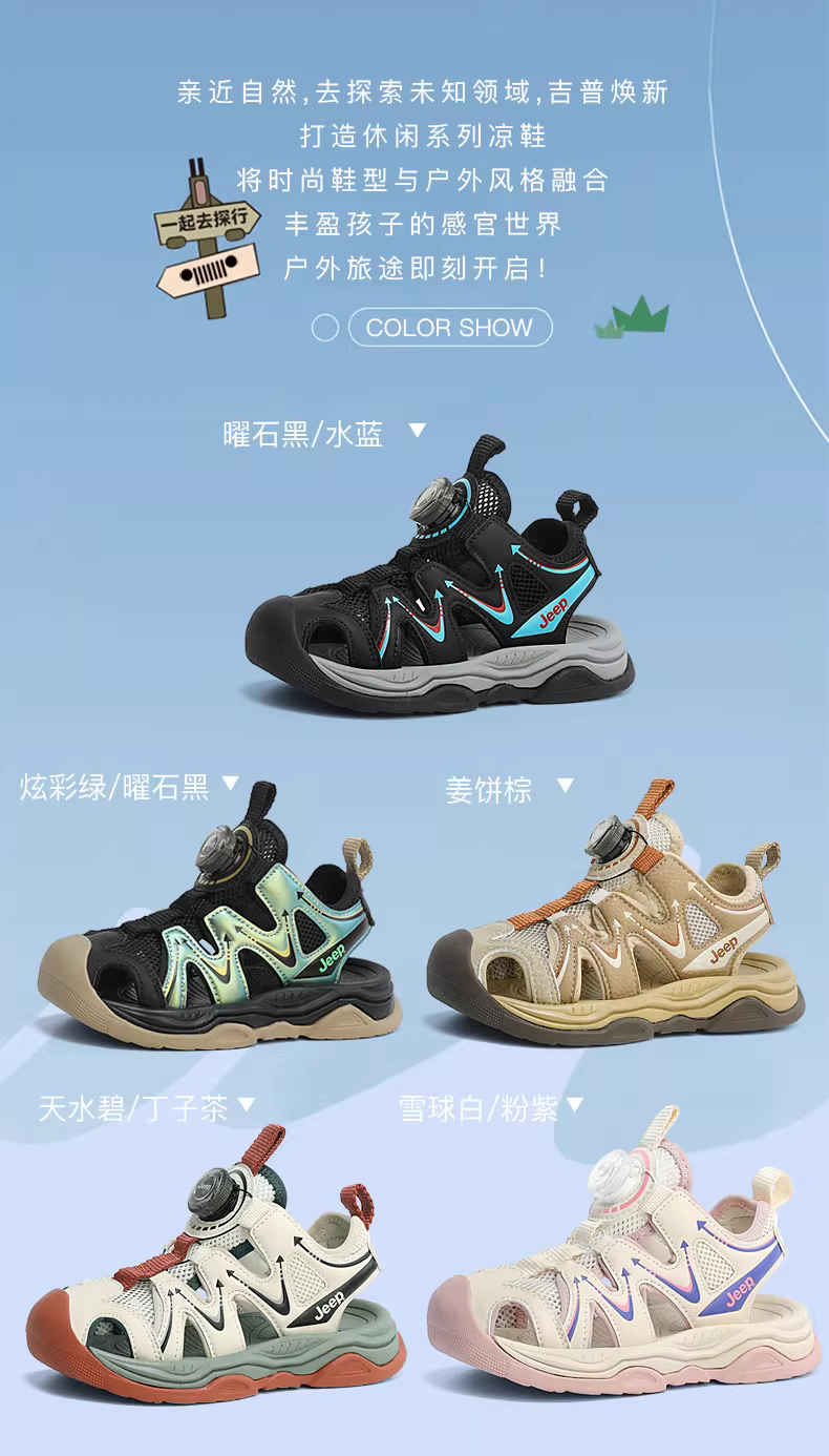 - Dép trẻ em Jeep, kiểu dáng thể thao mùa hè, mũi kín, giày đi biển cho bé, mẫu mới 2025, giày đi suối chống trơn trượt cho bé trai.