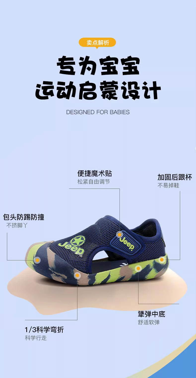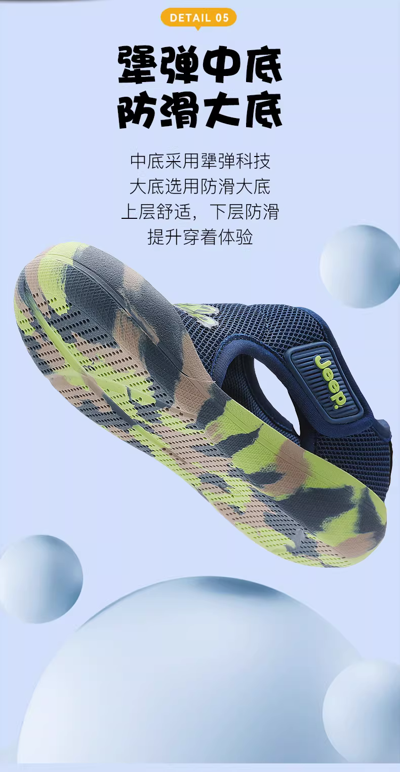 - Dép trẻ em Jeep mùa hè 2025, giày đi biển và suối chống trơn cho bé trai và bé gái, mũi kín, đế mềm
