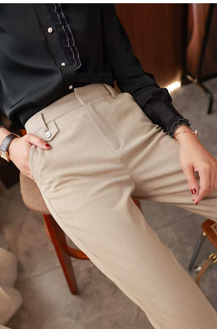 Đồ dùng cần thiết khi đi làm! Phải có! Quần thuốc lá, quần âu cơ bản dành cho nữ, cạp cao, tôn dáng, quần ống đứng thon gọn.