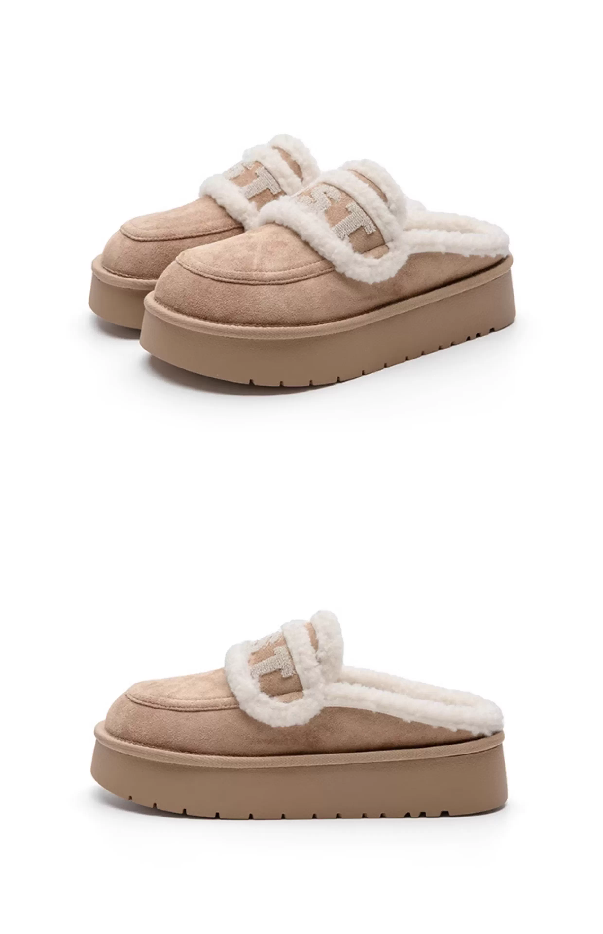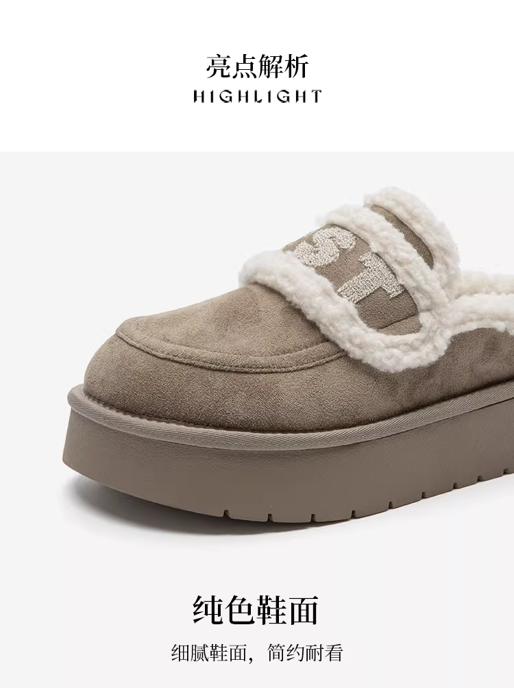 - Đôi dép lông Dadong dành cho nữ, mẫu mới thu đông 2025, chất liệu nhung dày dặn, kiểu Birkenstock, dép bông đế dày, ủng nửa ống giữ ấm mùa đông