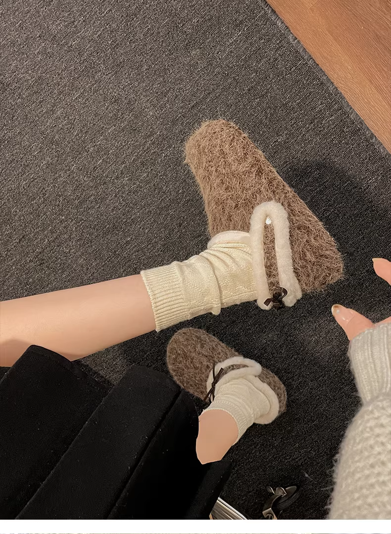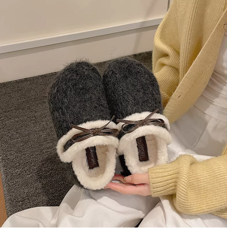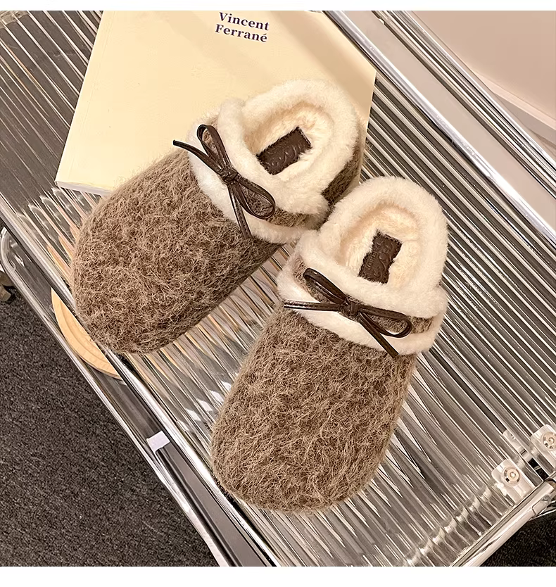 - Đôi dép lông dày đế cao chống trơn hai chiều dành cho nữ, mặc ngoài trời mùa đông, kiểu mới 2025, dép bông giữ ấm lót lông cừu.