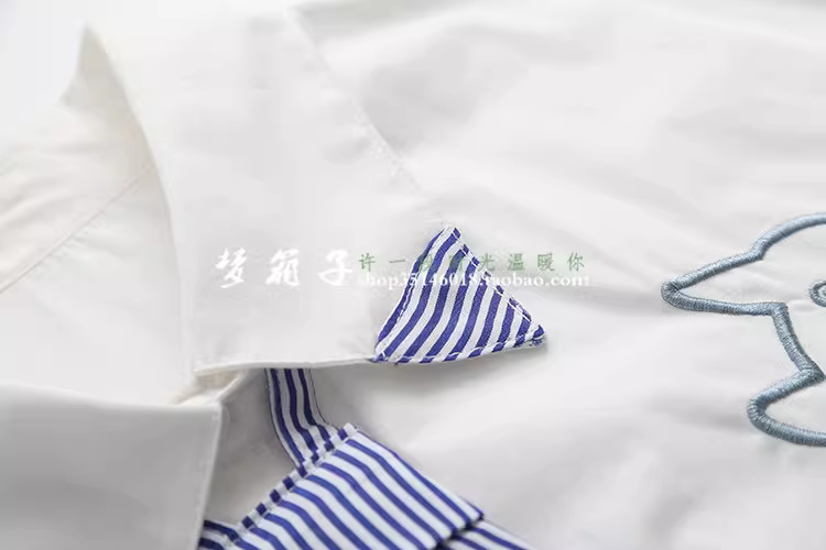 - Dream Box 2023 Mùa Hè Mới Mèo Nhật Bản Áo Sơ Mi Cotton Thêu Cổ Bẻ Tay Ngắn Sọc Thắt Nơ Áo Sơ Mi Trắng