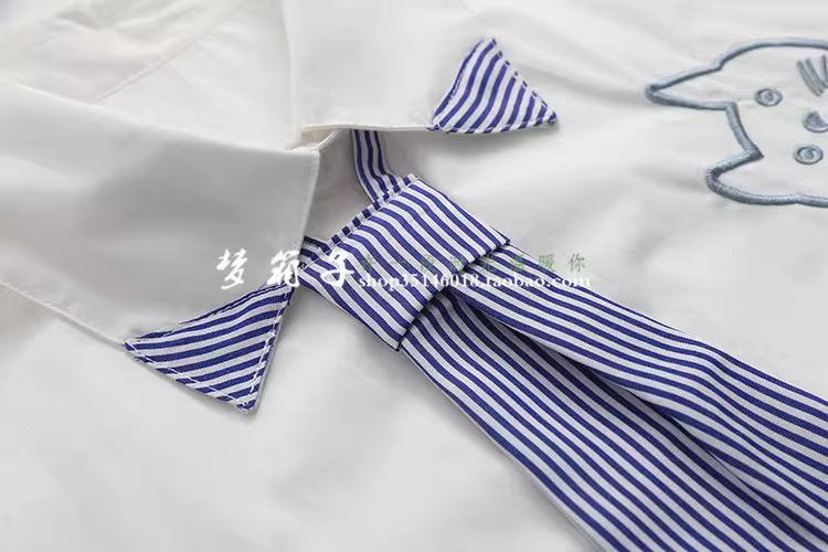 棉布面料,猫咪日文刺绣,条纹领带可脱卸,减龄百搭宽松款