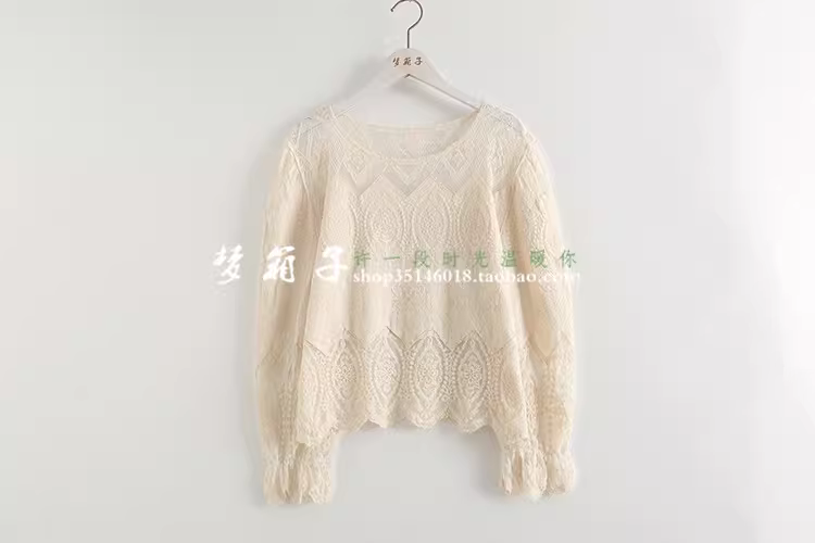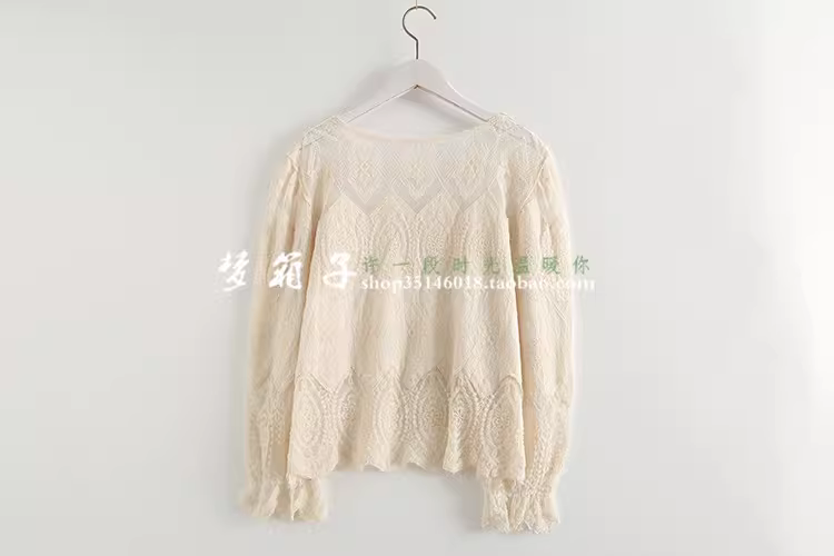 柔软细腻的蕾丝面料,镂空刺绣,圆领套头款,荷叶边长袖