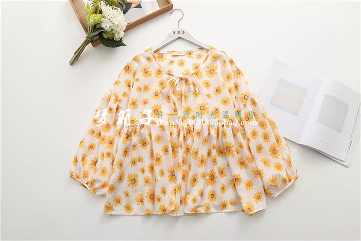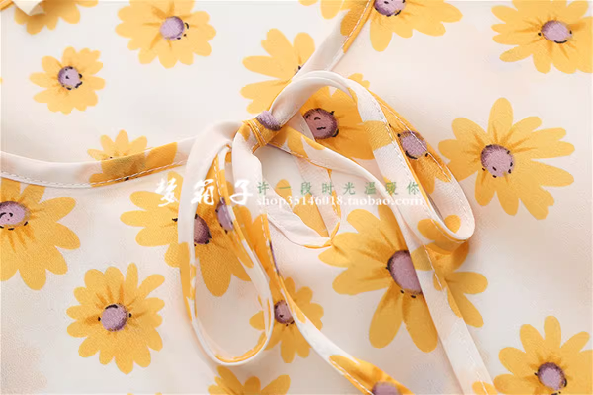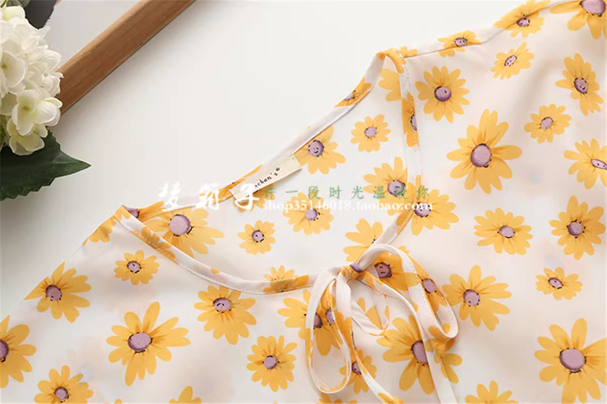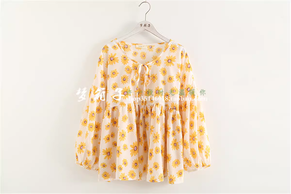 - Dream Box 2023 Mùa Hè Mới Tươi Hoa Cúc Giảm Tuổi Áo Sơ Mi Búp Bê Buộc Dây Cổ Tròn Áo Chui Đầu Áo Sơ Mi Rộng Cho Nữ