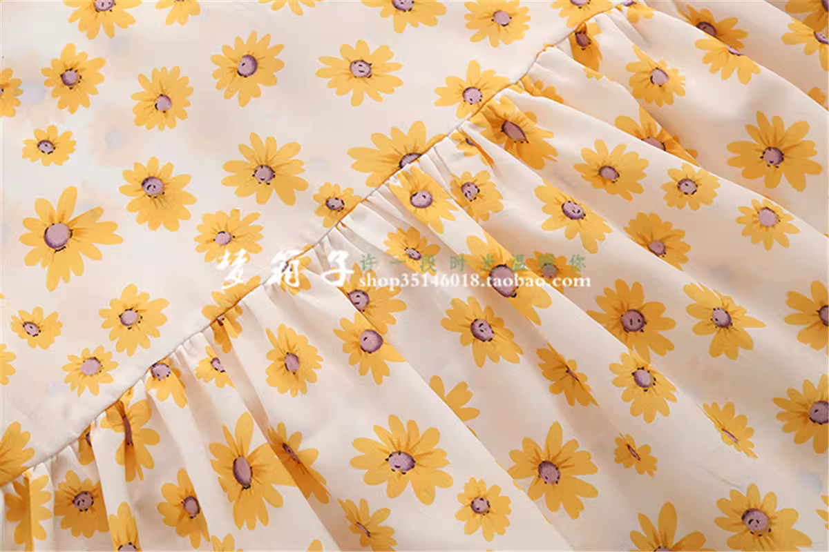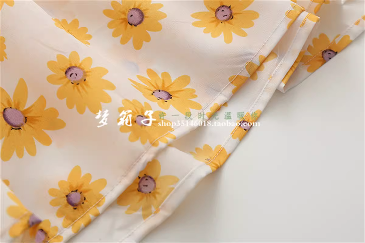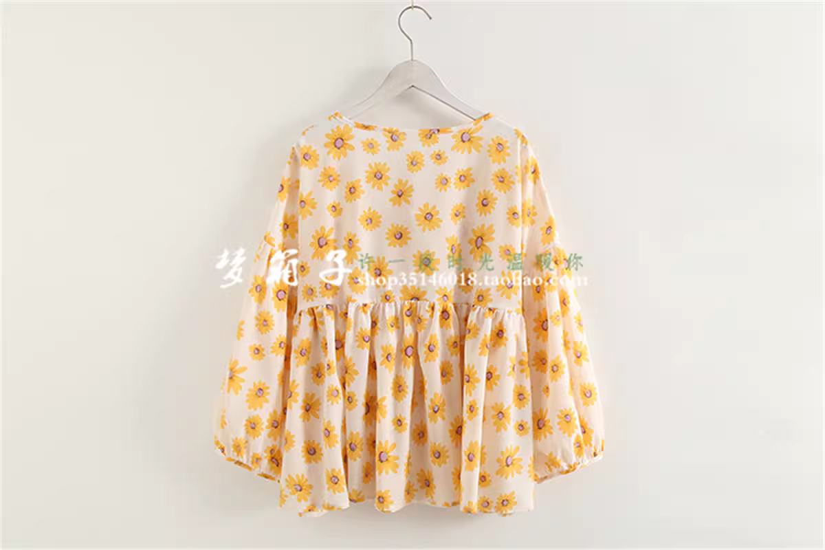 清新雏菊花朵印花,系带圆领,灯笼袖,宽松套头款