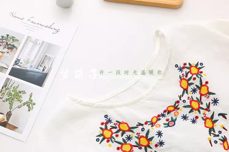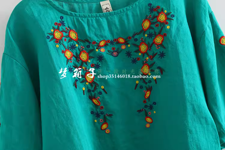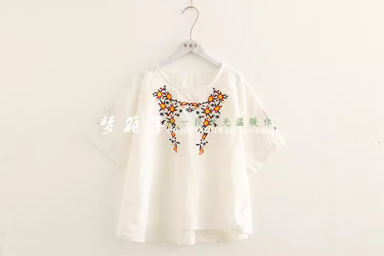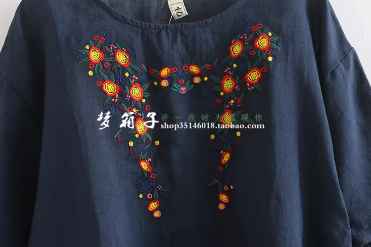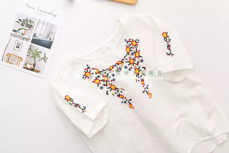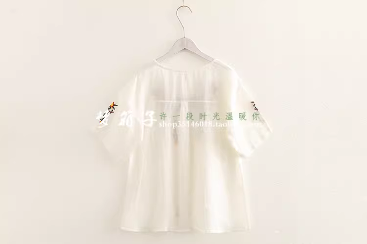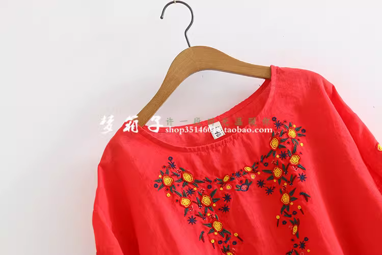- Dream Box 2023 Mùa Hè Phong Cách Mới Hoa Tươi Thêu Nặng Áo Sơ Mi Vải Lanh Nữ Cổ Tròn Chui Đầu Rời Áo Sơ Mi Màu Đỏ