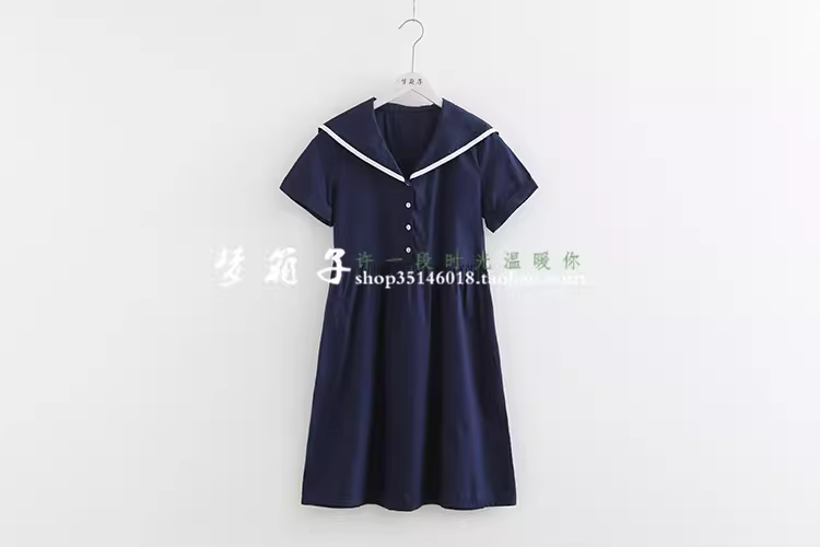 - Dream Box 2023 Mùa Hè Phong Cách Mới Nghệ Thuật Tươi Mát Màu Cotton Đầm Nữ Cổ Thủy Thủ Chui Đầu Tay Ngắn Đầm Rộng
