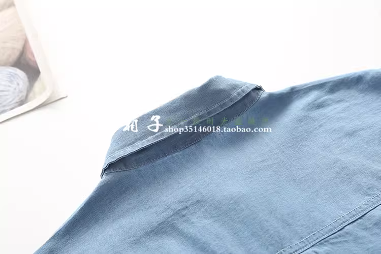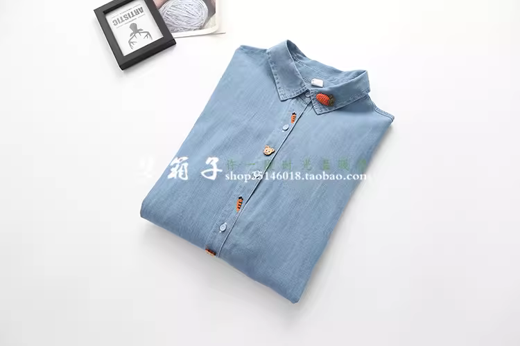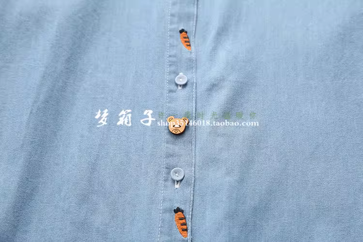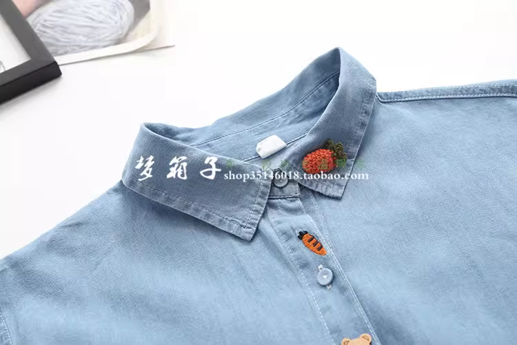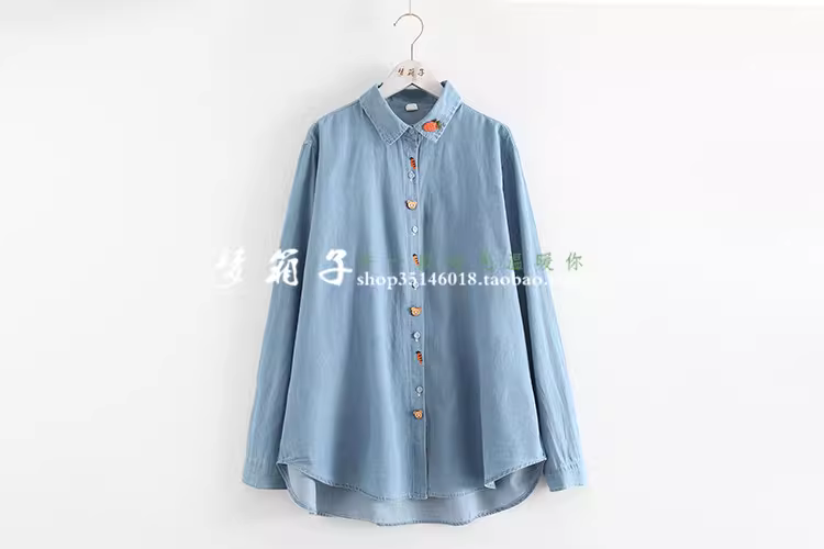 - Dream Box 2023 Mùa Xuân Mới Áo Sơ Mi Thêu Cà Rốt Có Nút Gấu Áo Sơ Mi Denim Dài Tay Rộng Cho Nữ