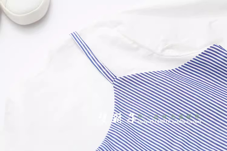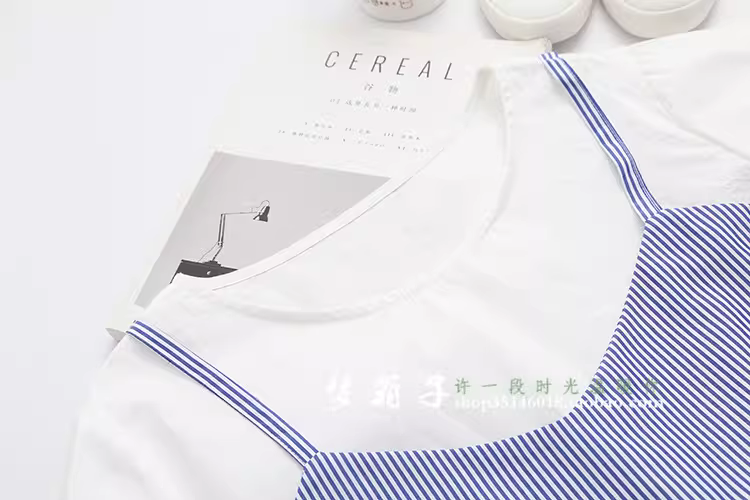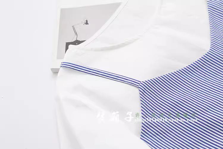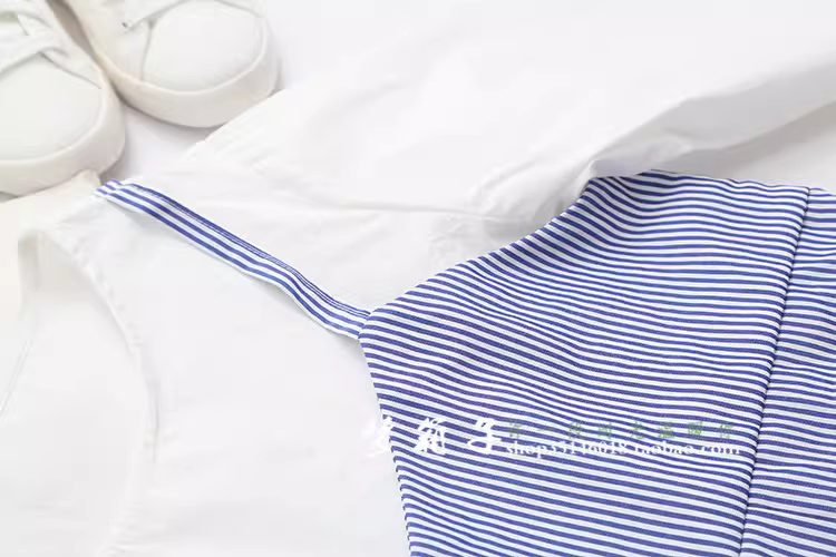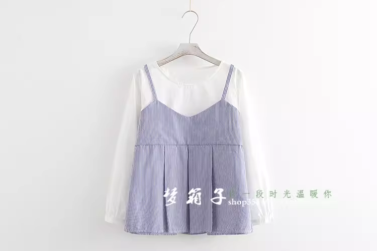 - Dream Box 2023 Thu Đông Mới Phong Cách Nhật Bản Tươi Mát Sọc Xanh Yếm Áo Sơ Mi Chắp Vá Nữ Cổ Tròn Giả Hai Mảnh Áo Sơ Mi Sọc