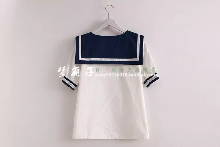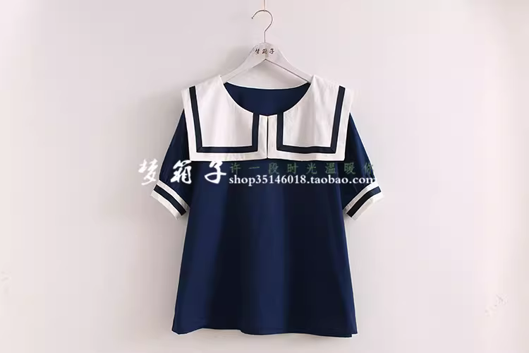 纯棉棉布面料,贴布方形海军领,减龄百搭宽松款