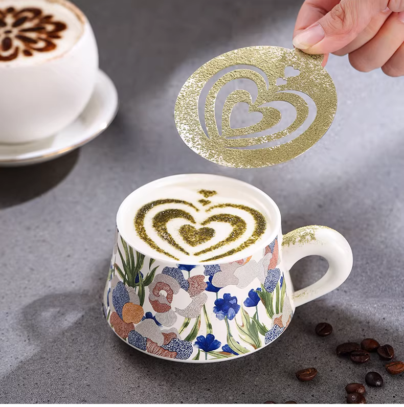 - Dụng cụ khắc hoa văn Latte Art bằng thép không gỉ Bincoo, họa tiết Jacquard tinh xảo, khuôn tạo hình Latte Art cà phê Matcha Ý