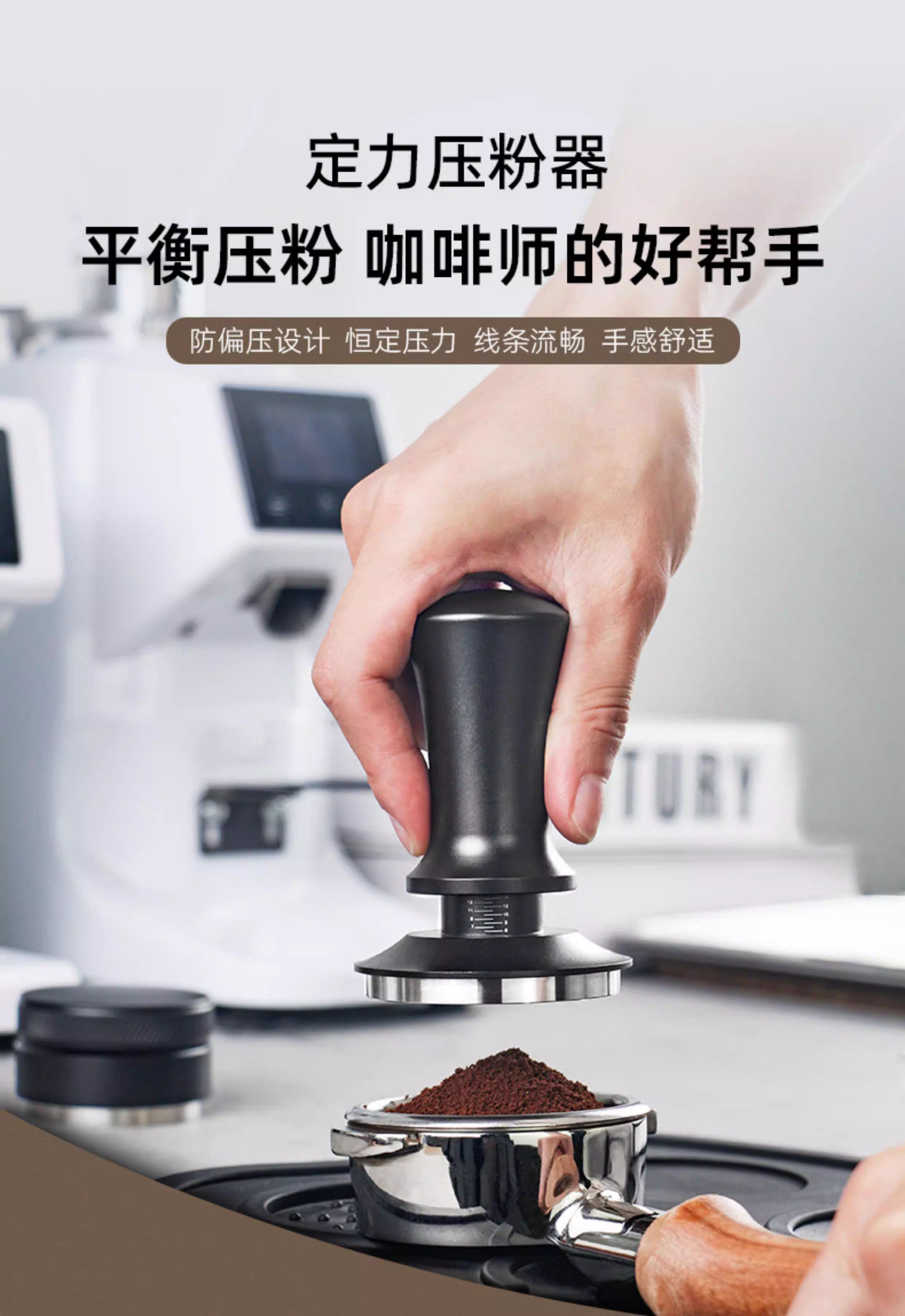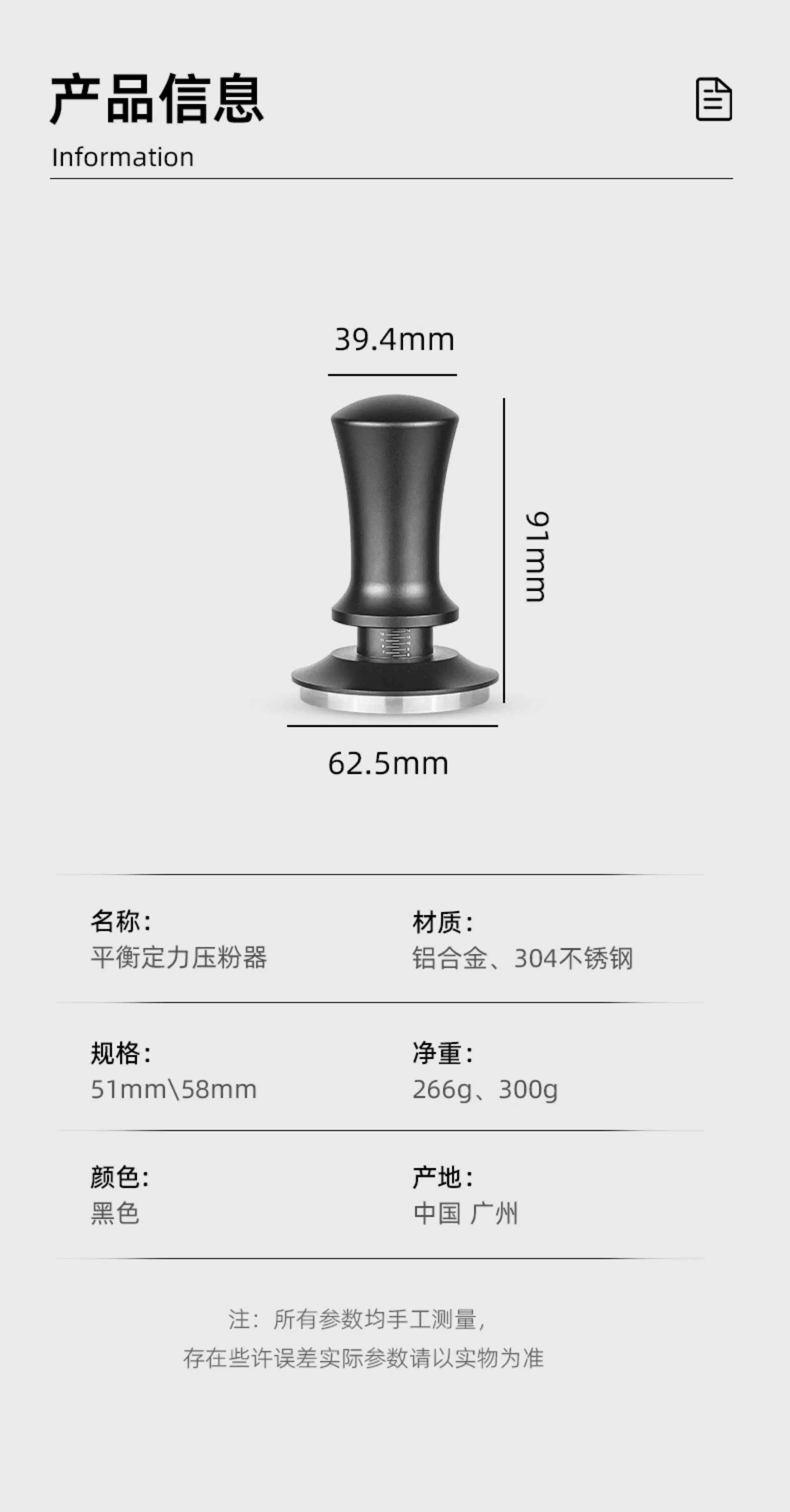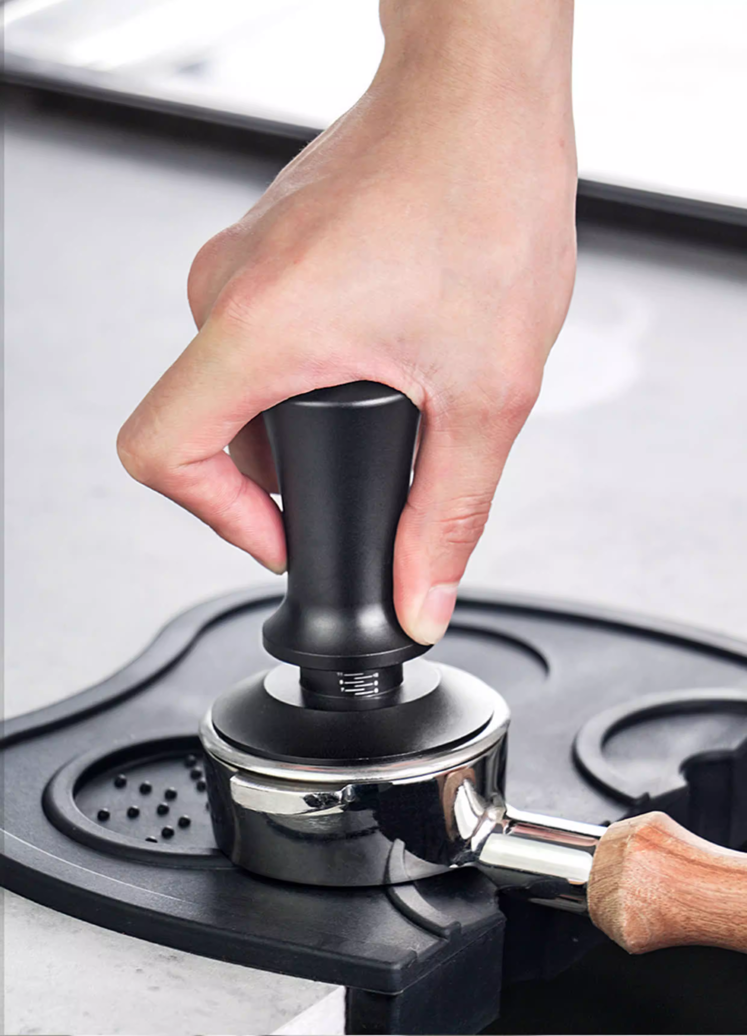 - Dụng cụ nén cà phê cho tay cầm máy pha cà phê espresso, búa áp lực có khả năng bật lại tự động cân bằng, 51/53/58mm