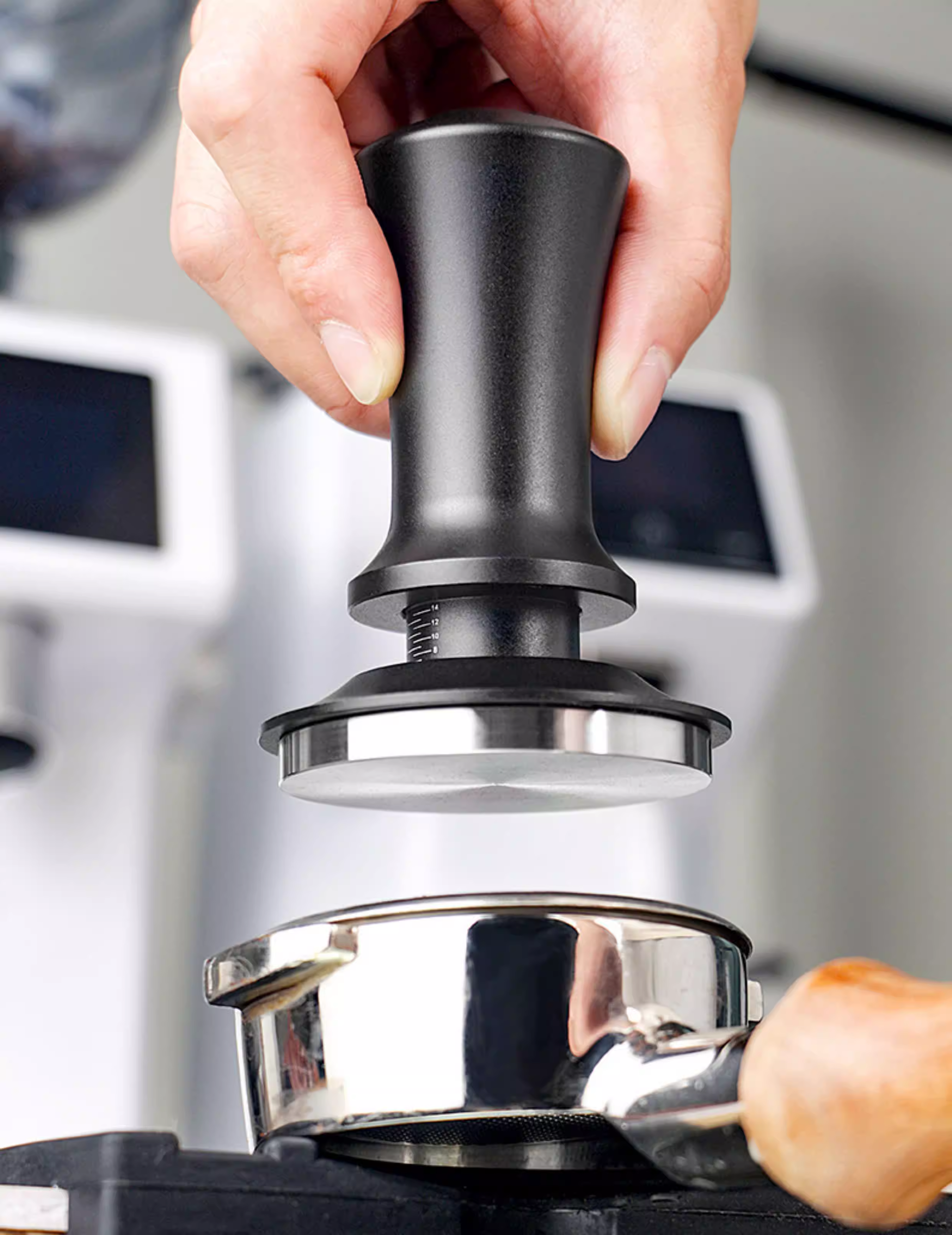 Dụng cụ nén cà phê cho tay cầm máy pha cà phê espresso, búa áp lực có khả năng bật lại tự động cân bằng, 51/53/58mm