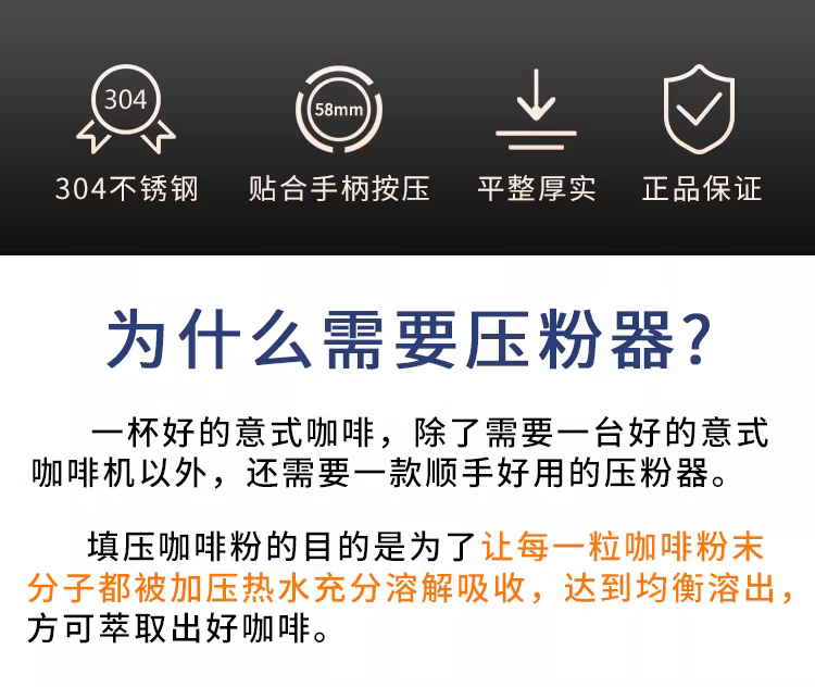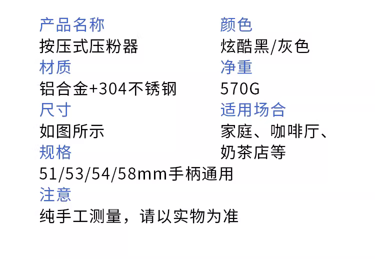 - Dụng cụ nén cà phê kiểu nhấn có độ đàn hồi cân bằng, dụng cụ nén cà phê tự động hồi phục chậm, dụng cụ nén cà phê làm đầy và cân bằng 51/53/58mm