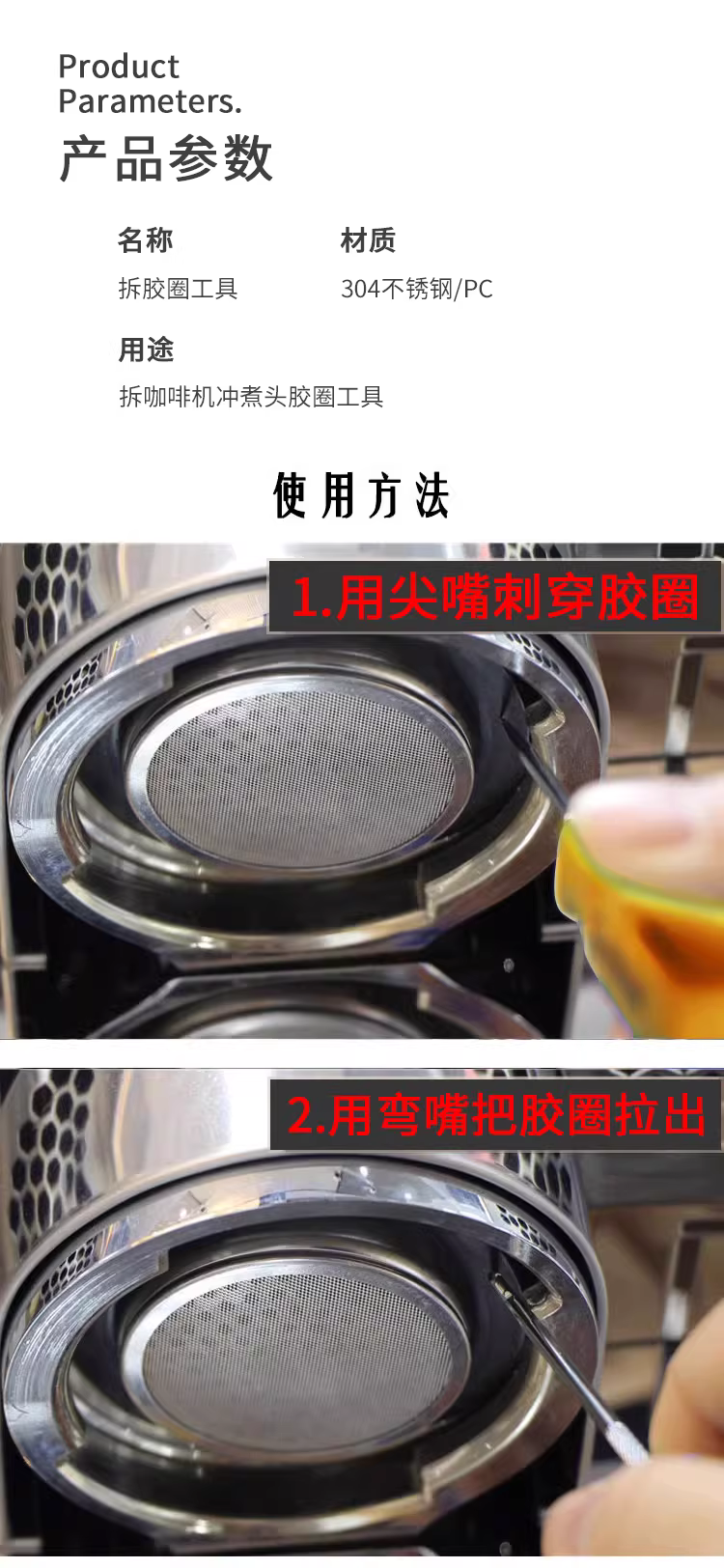 - Dụng cụ tháo vòng cao su của máy pha cà phê bán tự động của Ý, dụng cụ tháo vòng đệm đầu pha đặc biệt, phụ kiện đầu pha cà phê