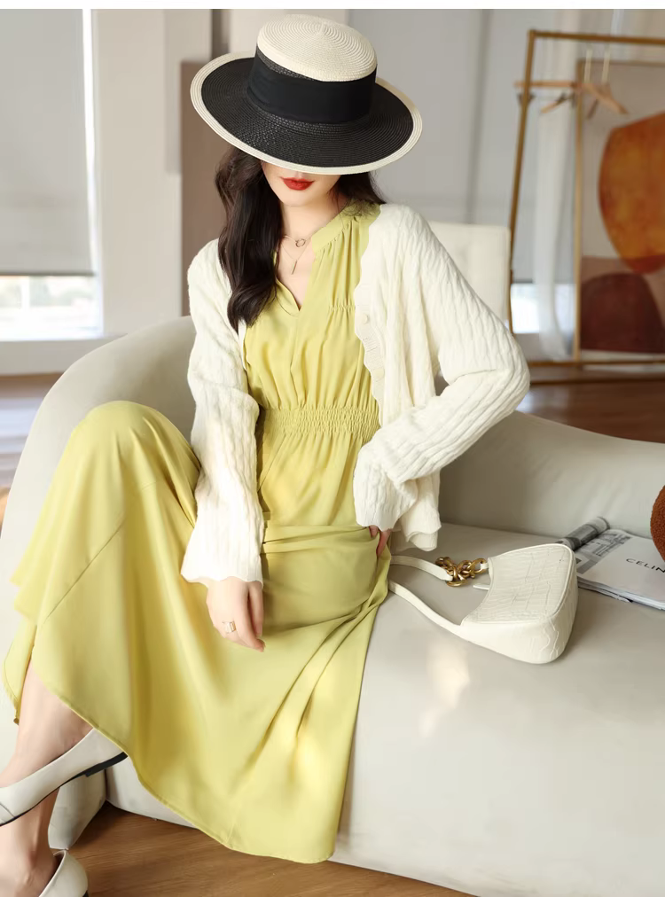 - Faman Manor váy ôm eo cổ chữ V tôn màu trái cây tươi đầu xuân dành cho nữ