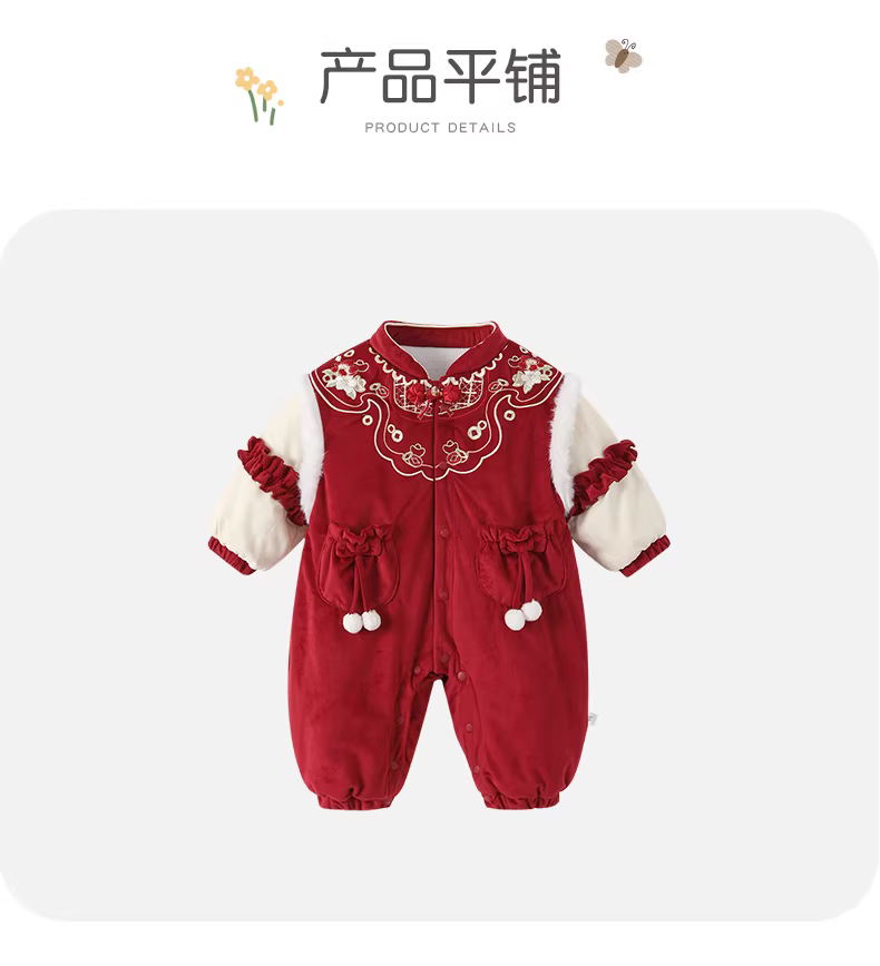 - Fanhai quần áo trẻ em mùa đông trang phục bé gái sơ sinh phong cách Trung Hoa có đệm áo liền quần trăng tròn trăm ngày đi chơi áo liền quần mùa đông