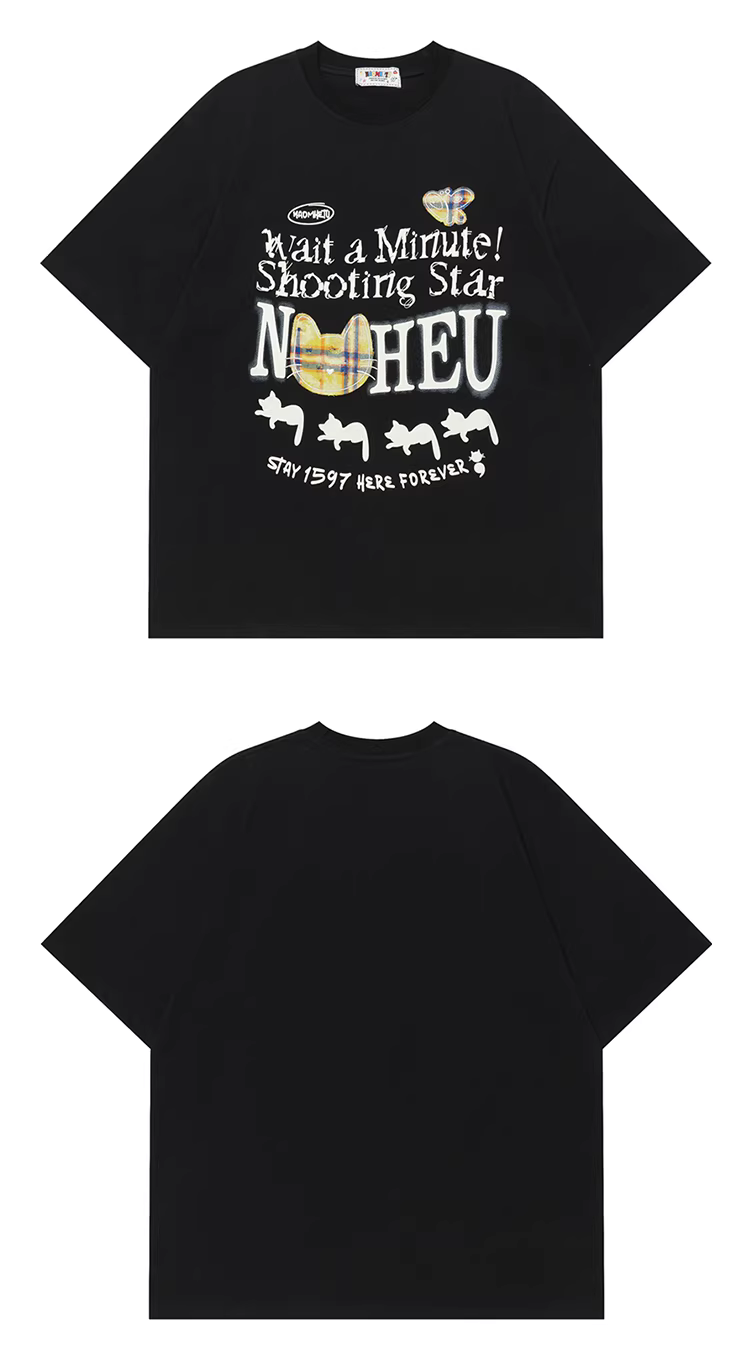 - From Mars Cat Resting Vintage Trendy Brand Animal Letter Pattern Niche Casual Áo ngắn tay đa năng