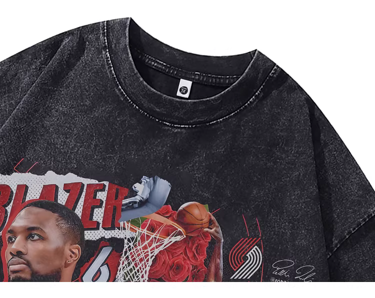 - From Mars Confident Shadow American High Street Unisex Classic Retro Washed Distressed Áo thun ngắn tay dáng rộng vừa vặn