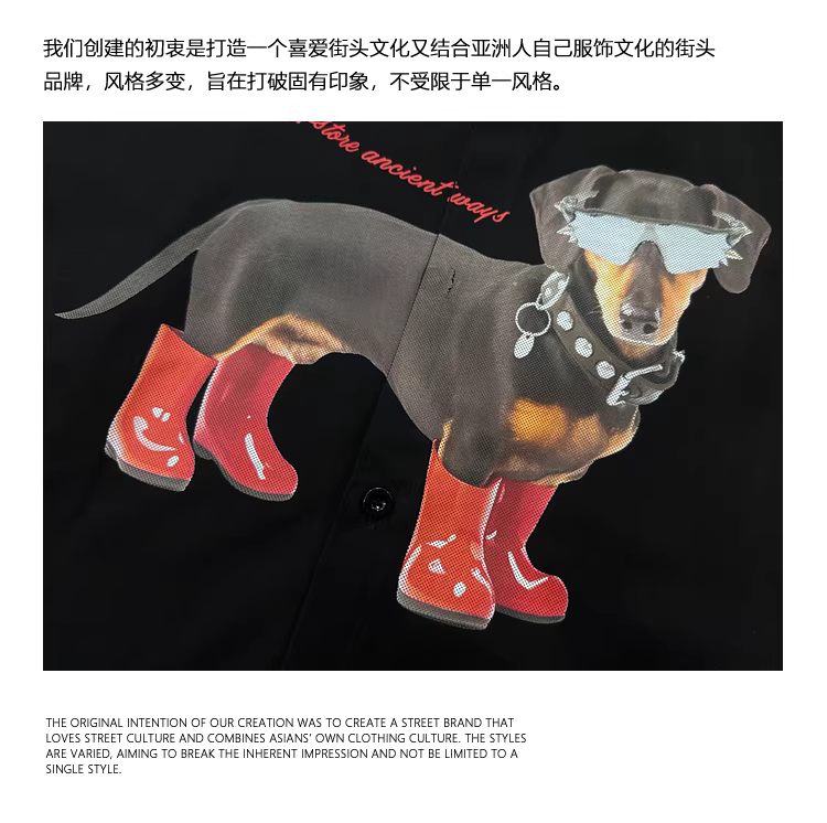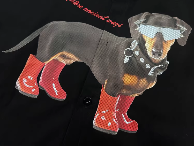 - From Mars Cool Everyday Phong cách Nhật Bản giản dị vui nhộn Áo sơ mi dài tay in hình chó Unisex Đa năng