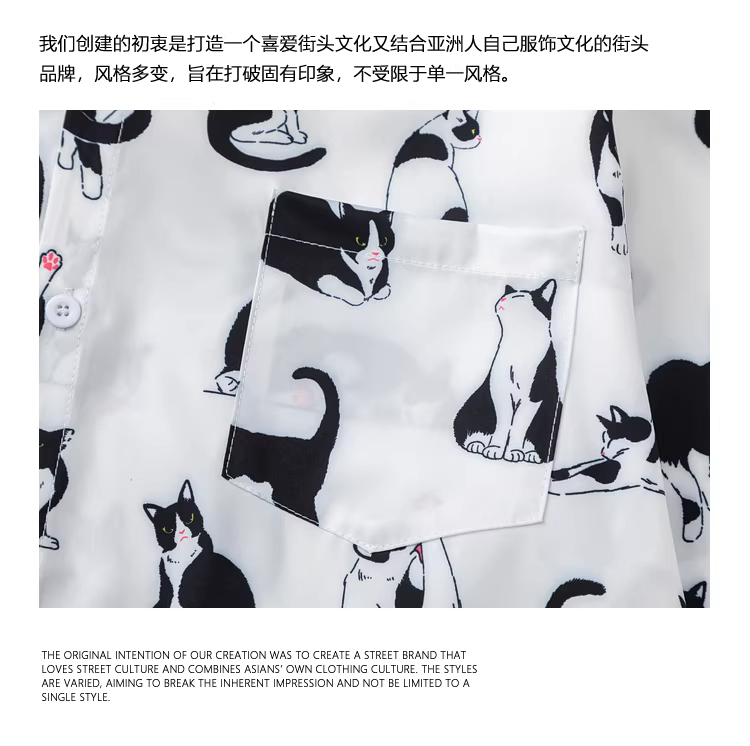 - From Mars Cow and Kitten Áo sơ mi dài tay in hình động vật kiểu Nhật Bản Harajuku đa năng