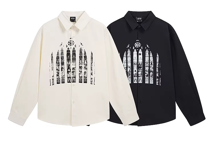 - From Mars Heavy Industry Print Niche Loose Round Neck Casual Áo sơ mi dài tay đơn giản đa năng Áo thun phong cách đường phố cho nam