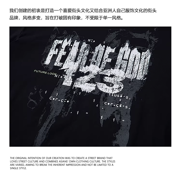 - From Mars So Many Audiences Street Retro Letter Graffiti Design Áo thun ngắn tay cổ tròn dáng rộng bf