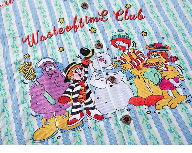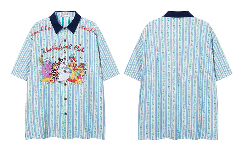 - From Mars Time Party Áo sơ mi ngắn tay thêu sọc phong cách retro Nhật Bản Loose BF