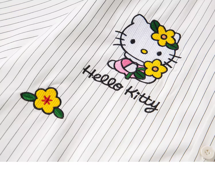 - From Mars Weekly Diary Phong cách Nhật Bản cổ điển Hoạt hình vui nhộn Áo sơ mi ngắn tay sọc thêu dễ thương