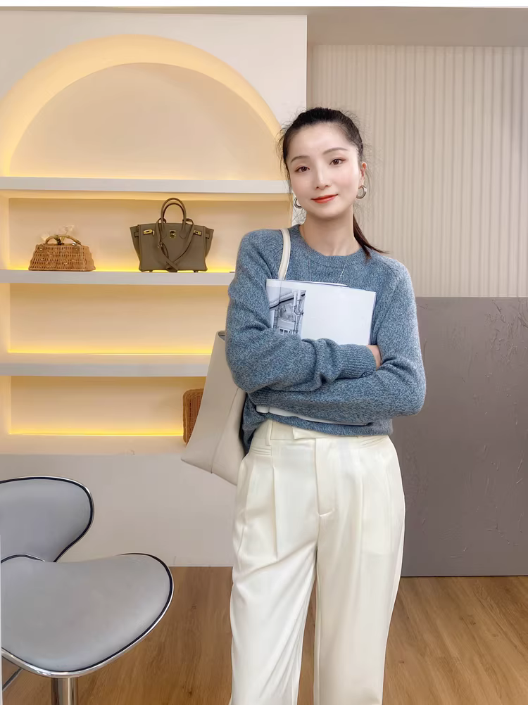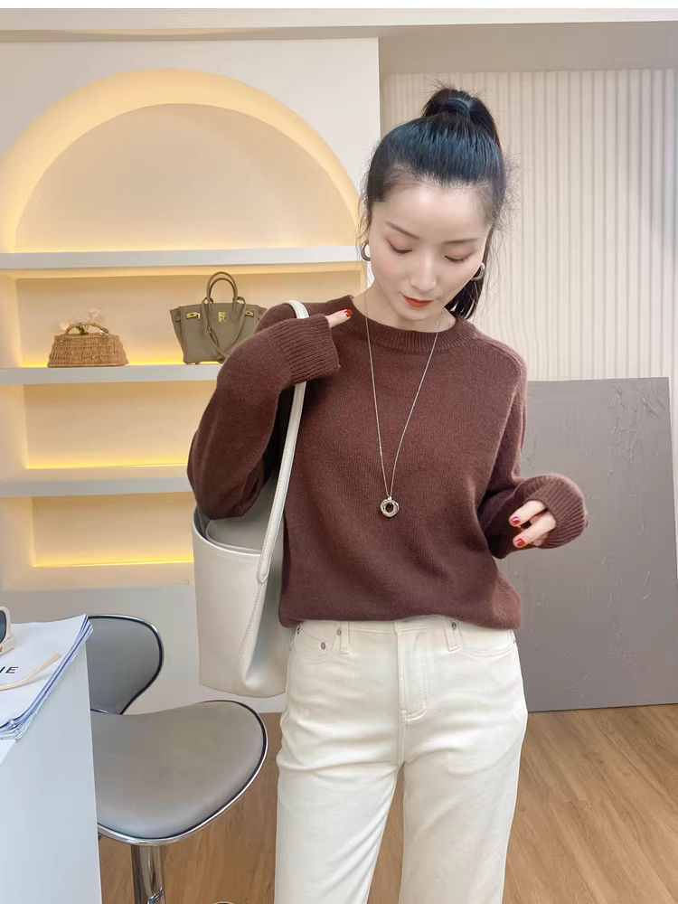 - Giá cực tốt! Áo len dáng rộng cổ tròn, chất liệu len, giúp thon gọn dáng người dành cho nữ.