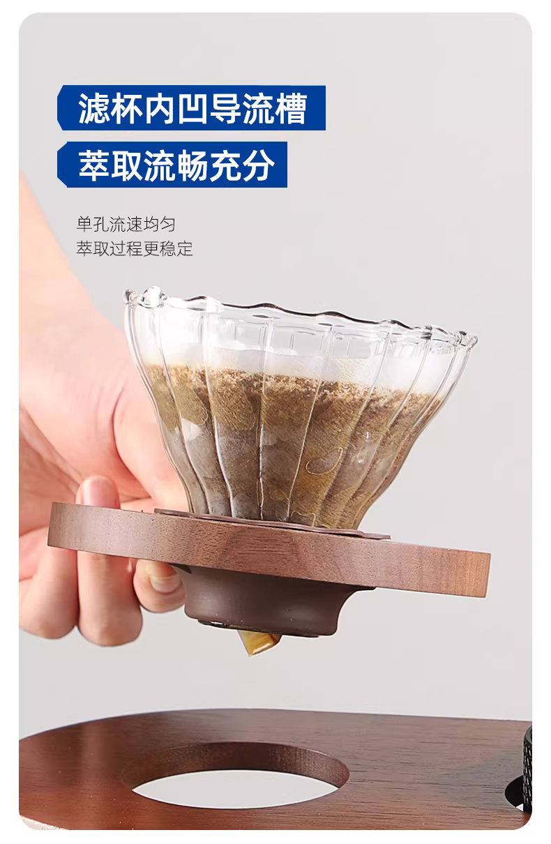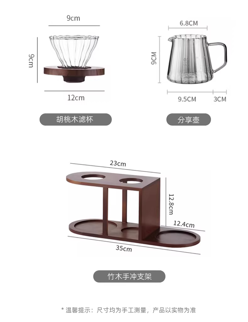 Giá để cà phê pha thủ công Bincoo, ấm chia sẻ, ấm pha cà phê thủ công, cốc lọc thủy tinh, bộ đầy đủ để sử dụng tại nhà, giá đỡ bằng gỗ cổ điển