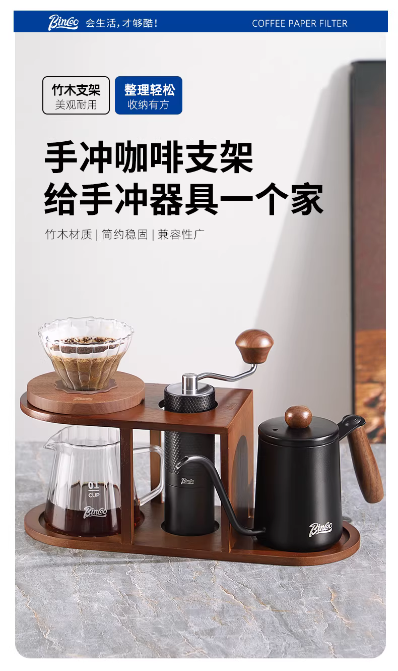 - Giá để cà phê pha thủ công Bincoo, ấm chia sẻ, ấm pha cà phê thủ công, cốc lọc thủy tinh, bộ đầy đủ để sử dụng tại nhà, giá đỡ bằng gỗ cổ điển