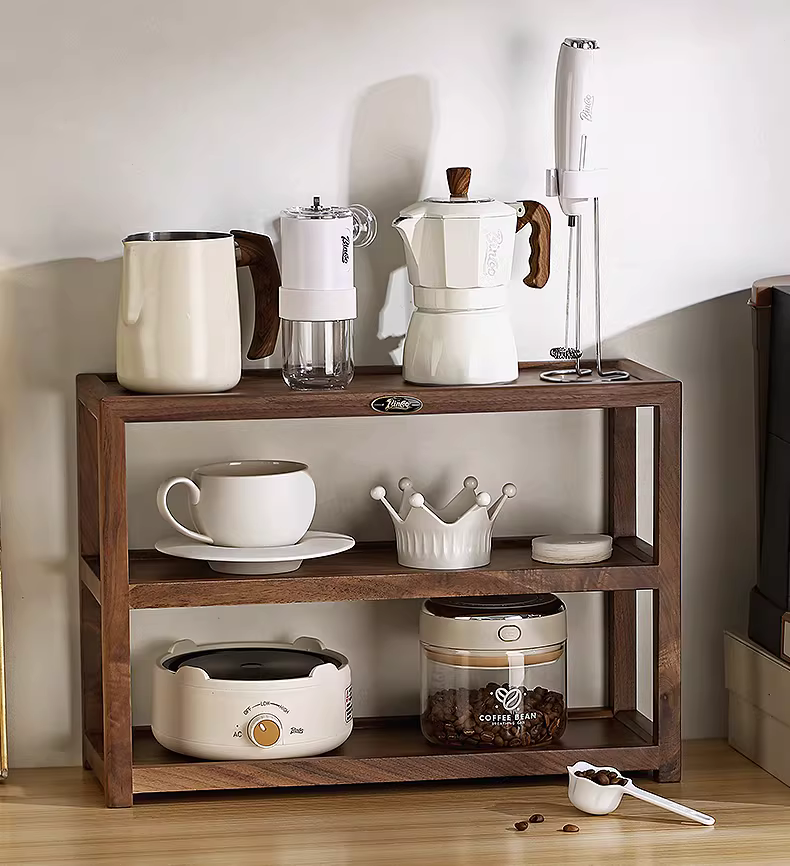 - Giá để đồ pha cà phê Bincoo bằng gỗ óc chó, tủ đựng đồ nhiều tầng, kệ sắp xếp góc cà phê gia đình, chất liệu gỗ nguyên khối