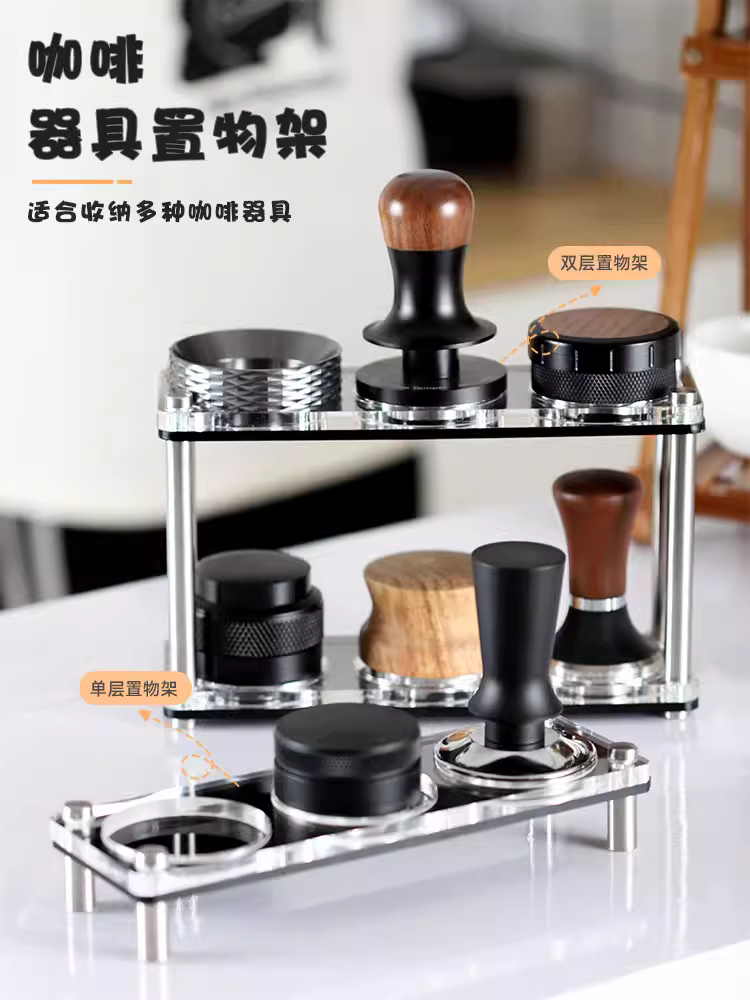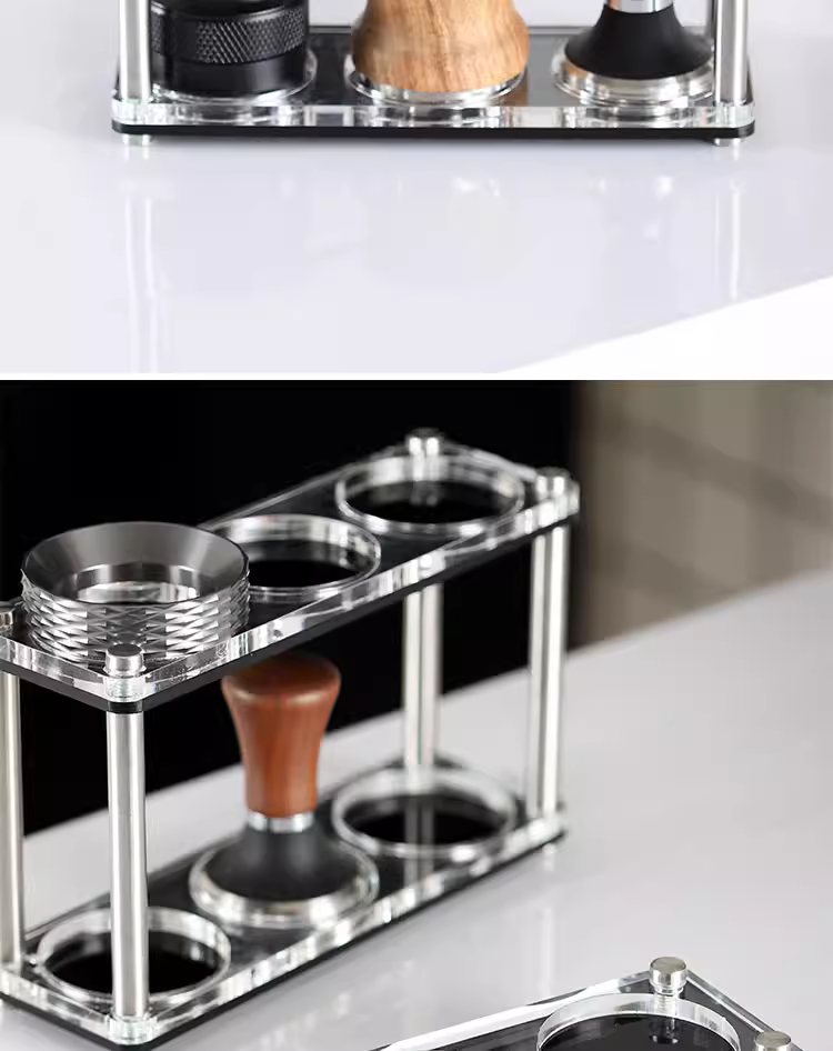 - Giá để đồ pha cà phê espresso hai lớp acrylic, giá để dụng cụ tamper và phân phối cà phê 51/53/58mm, giá để đồ quầy bar