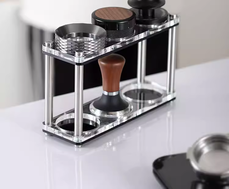 Giá để đồ pha cà phê espresso hai lớp acrylic, giá để dụng cụ tamper và phân phối cà phê 51/53/58mm, giá để đồ quầy bar