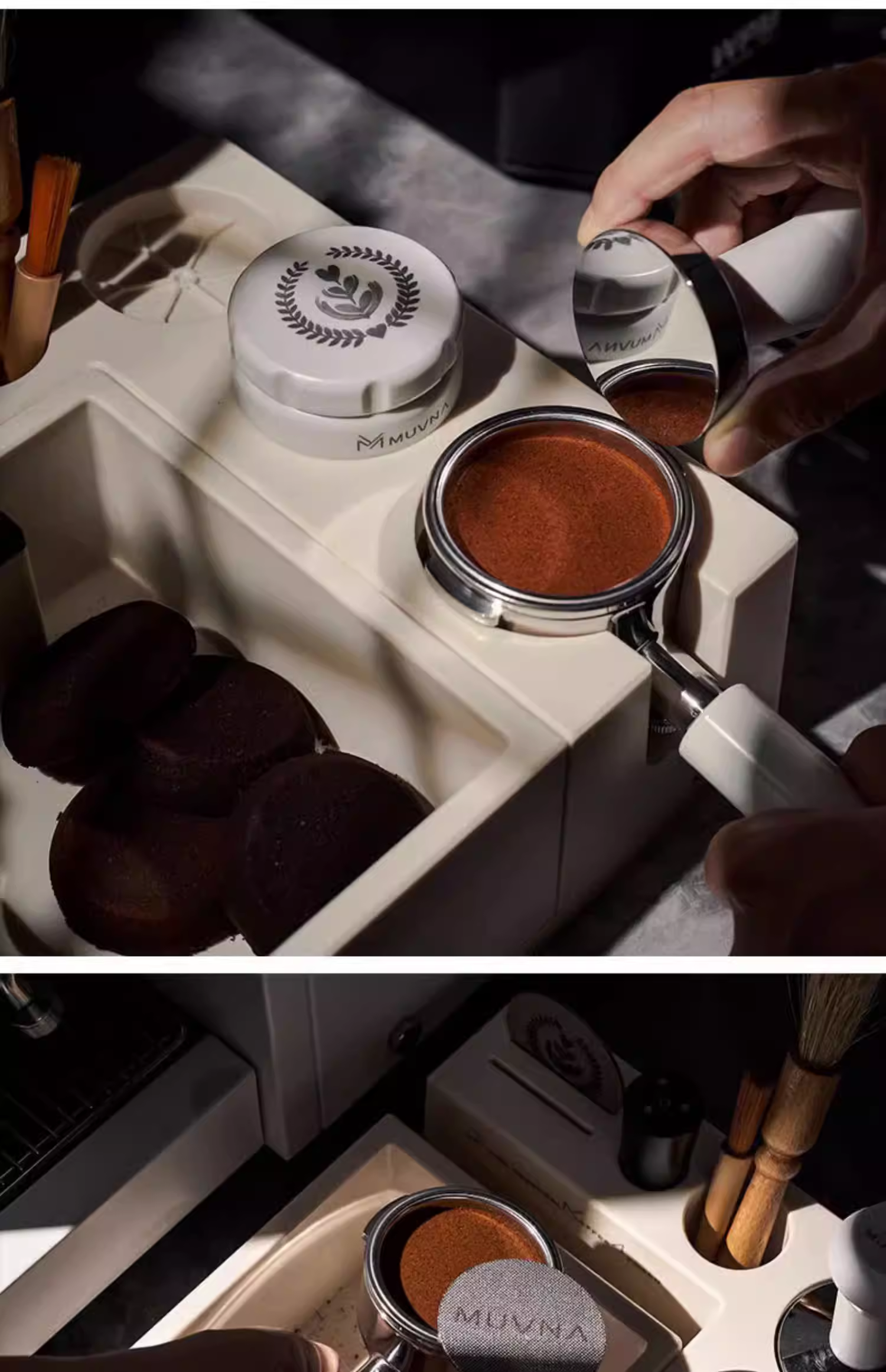 - Giá đỡ tamper đa năng, đế tamper, tay cầm, giá đỡ máy pha cà phê Ý MUVNA chất liệu ABS
