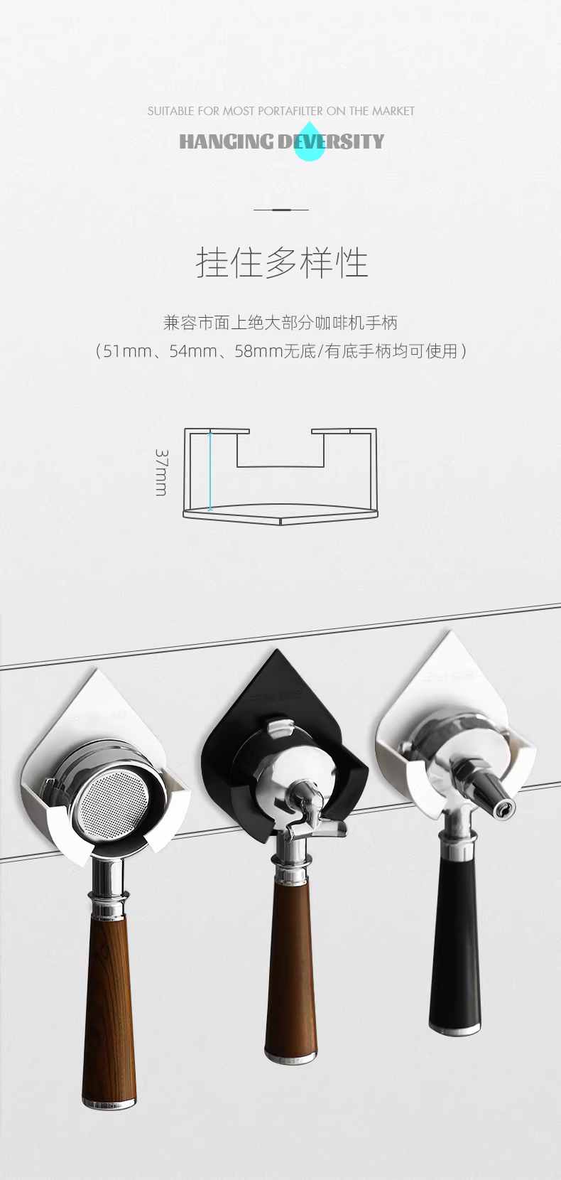 - Giá đỡ tay cầm máy pha cà phê kiểu bomber, gắn tường hình giọt nước, dành cho máy pha cà phê Ý, giá để tay cầm đa năng 51/53/58mm