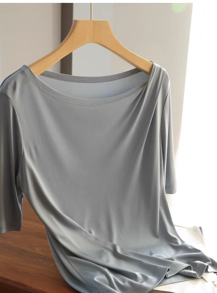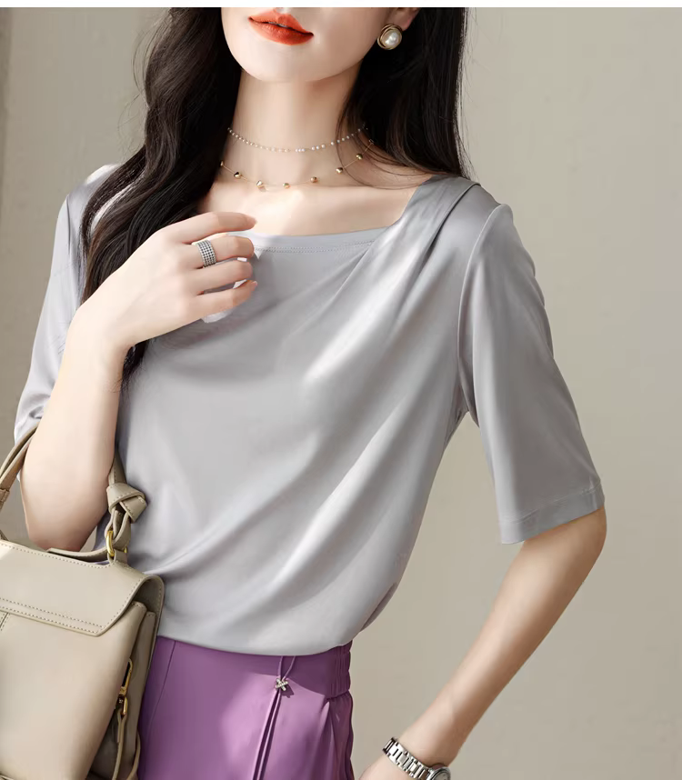 Giá gốc nhà máy! Áo thun acetate tuyệt đẹp, dáng xòe, vai xếp ly, kiểu dáng mát mẻ và bay bổng, tay ngắn dành cho nữ, phong cách mùa hè mới.