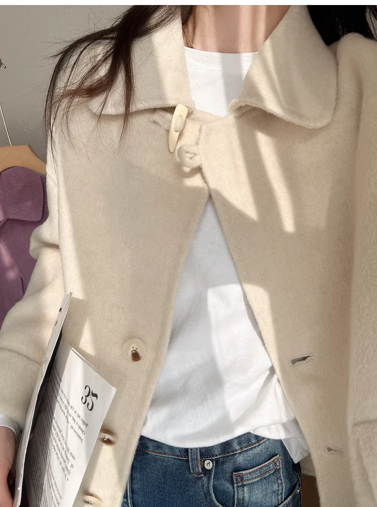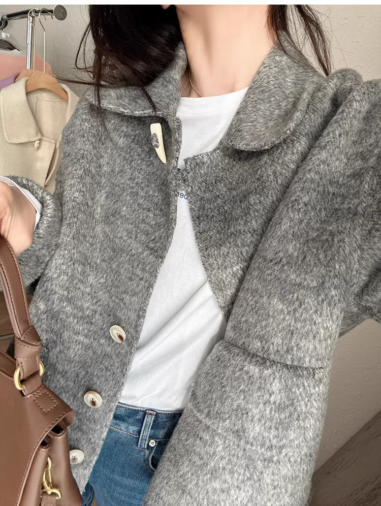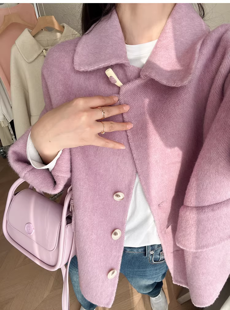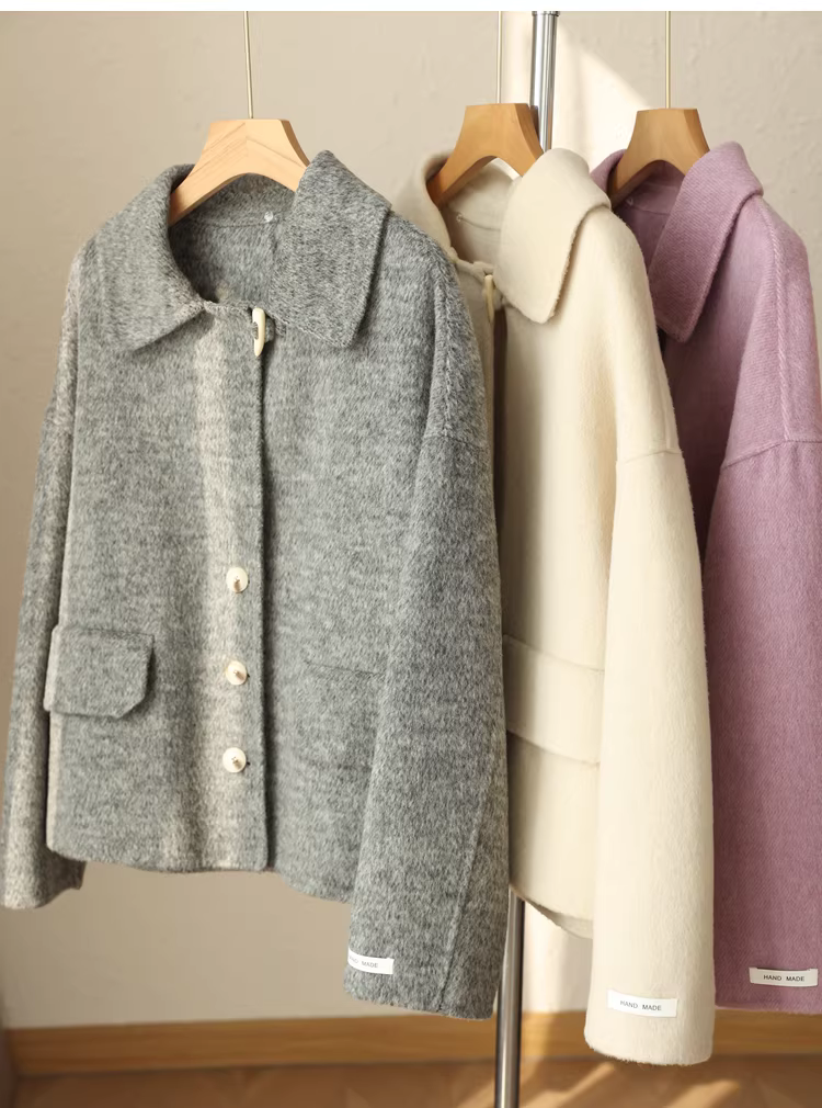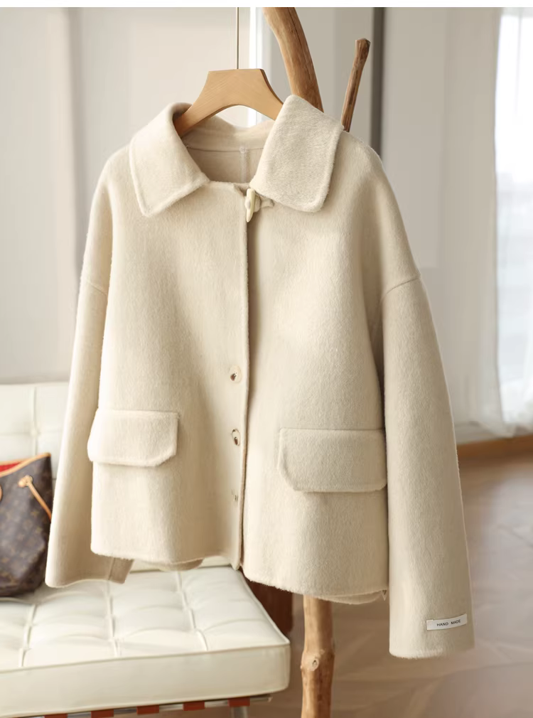 - Giảm giá! Áo cổ miễn phí! Áo khoác len hai lớp làm thủ công 100% len siêu mịn của Úc với cổ áo búp bê dành cho nữ.