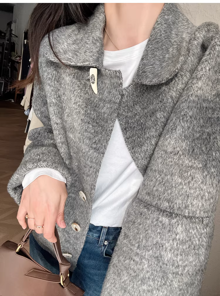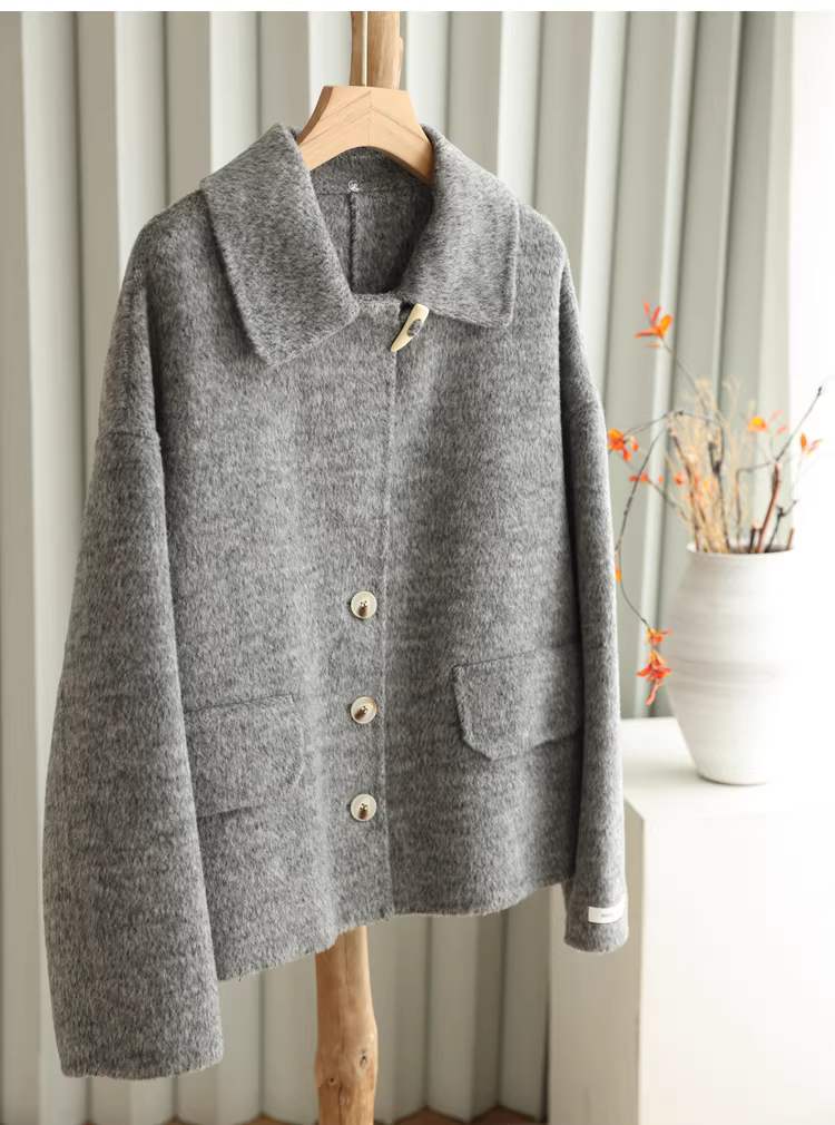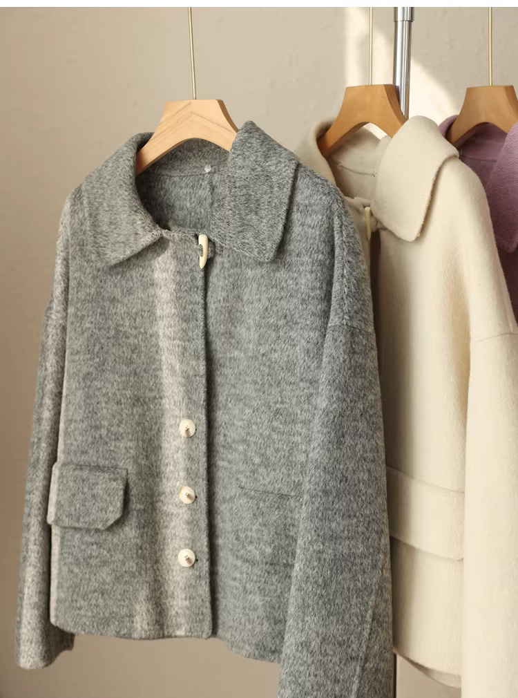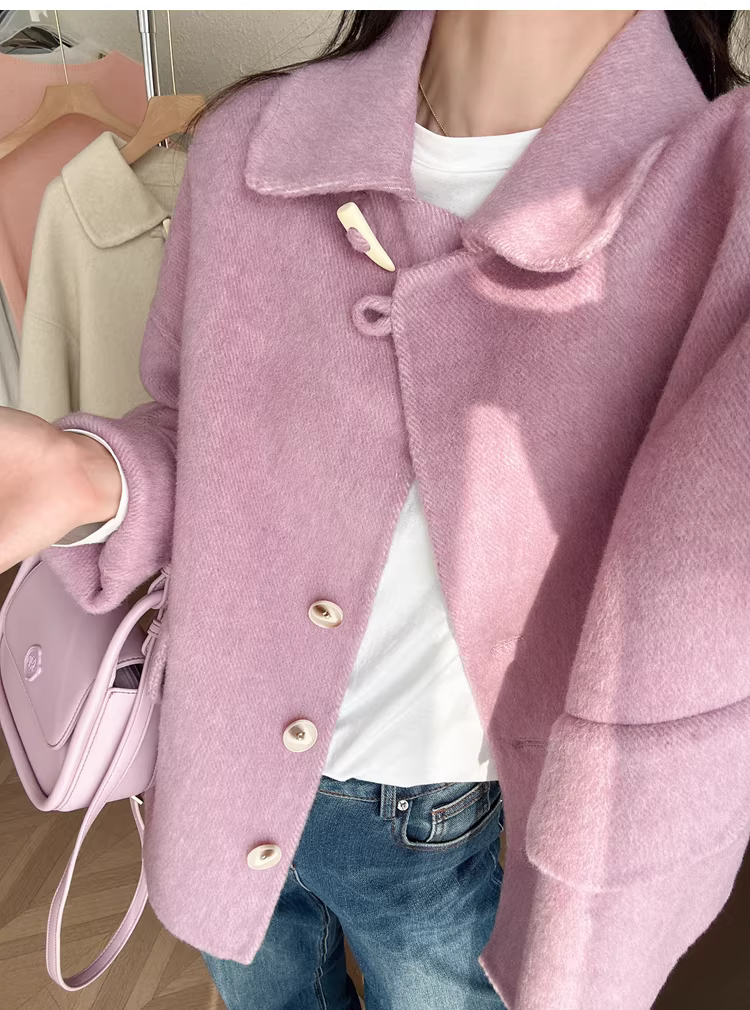 - Giảm giá! Áo cổ miễn phí! Áo khoác len hai lớp làm thủ công 100% len siêu mịn của Úc với cổ áo búp bê dành cho nữ.