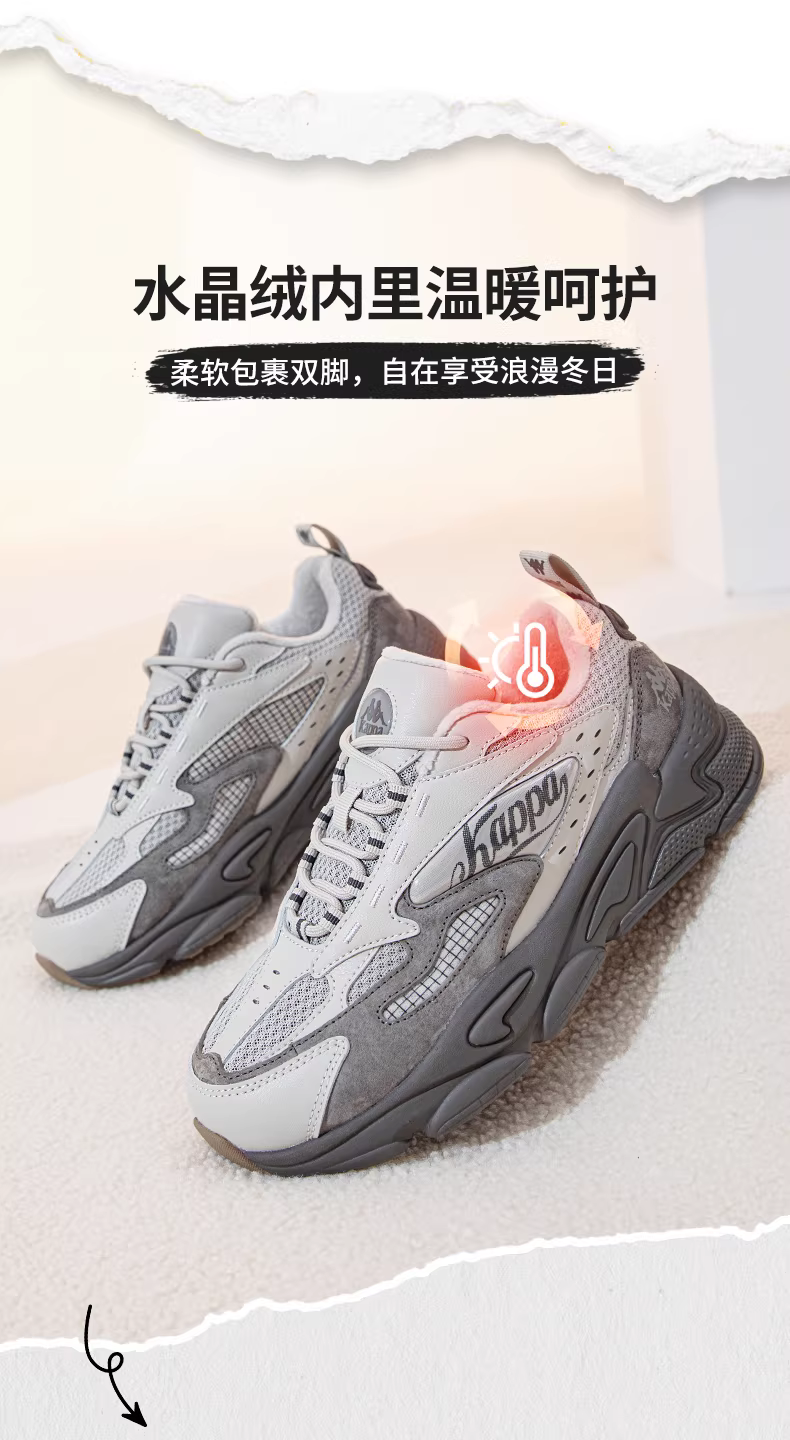 - [Giảm giá đặc biệt] Giày nam Kappa có lót lông cừu, giày bố đế dày mùa đông 2025