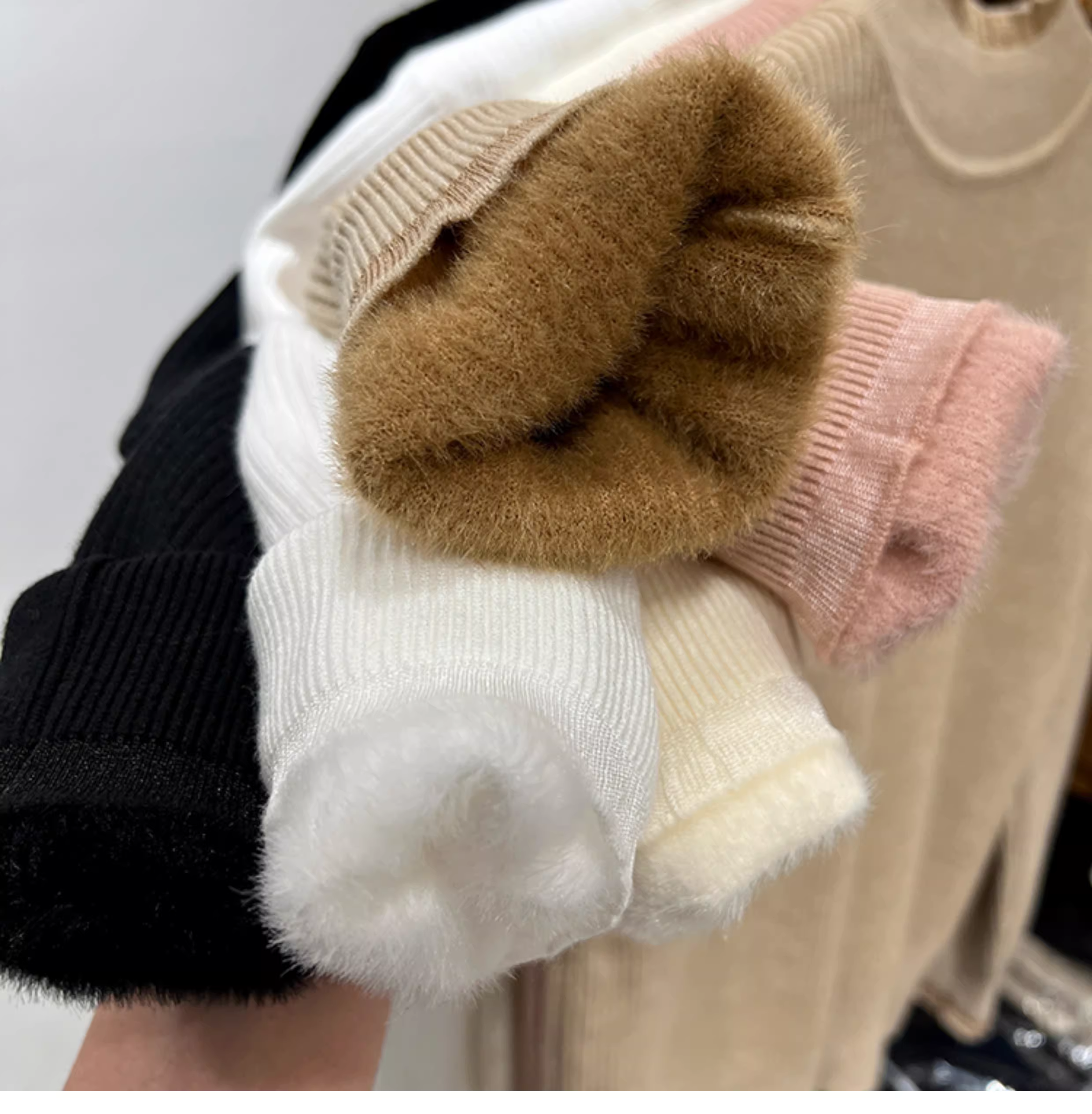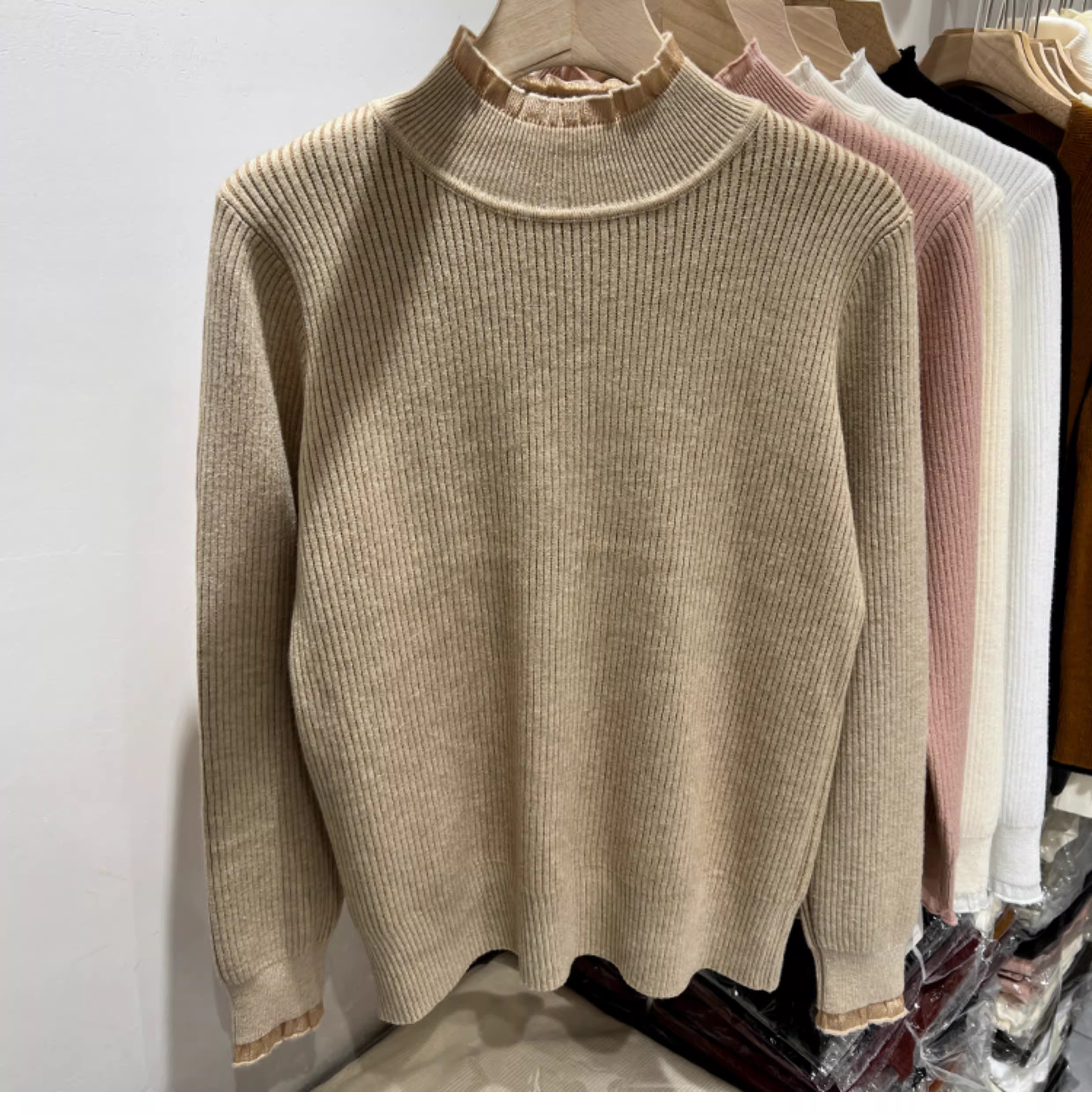 - Giảm giá thanh lý quần áo nữ có tag cắt, lót lông cừu, viền ren dày, áo len dệt kim cổ nửa cao, áo dài tay có gân.
