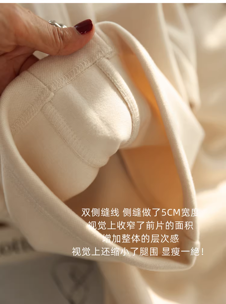 裤身两侧双侧缝线,侧缝做了5CM宽度