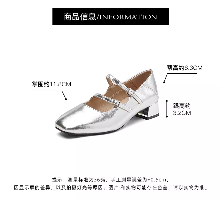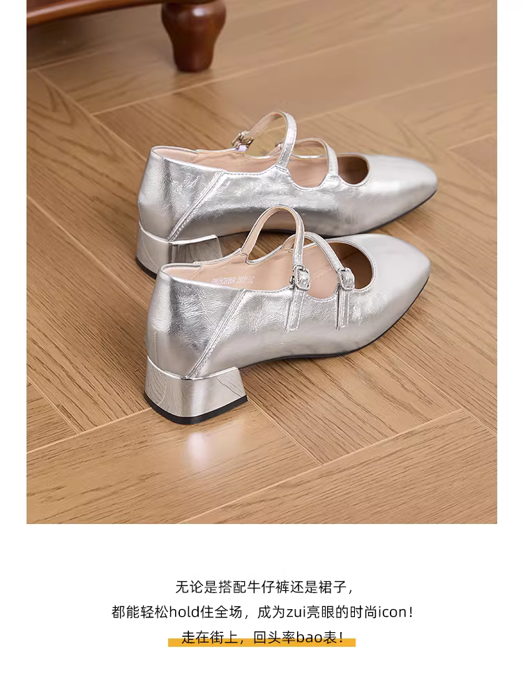 Giày bệt bạc Dadong dành cho nữ 2025, giày nữ mùa thu mới, giày da nhỏ đa năng, mũi vuông, gót dày, kiểu Mary Jane