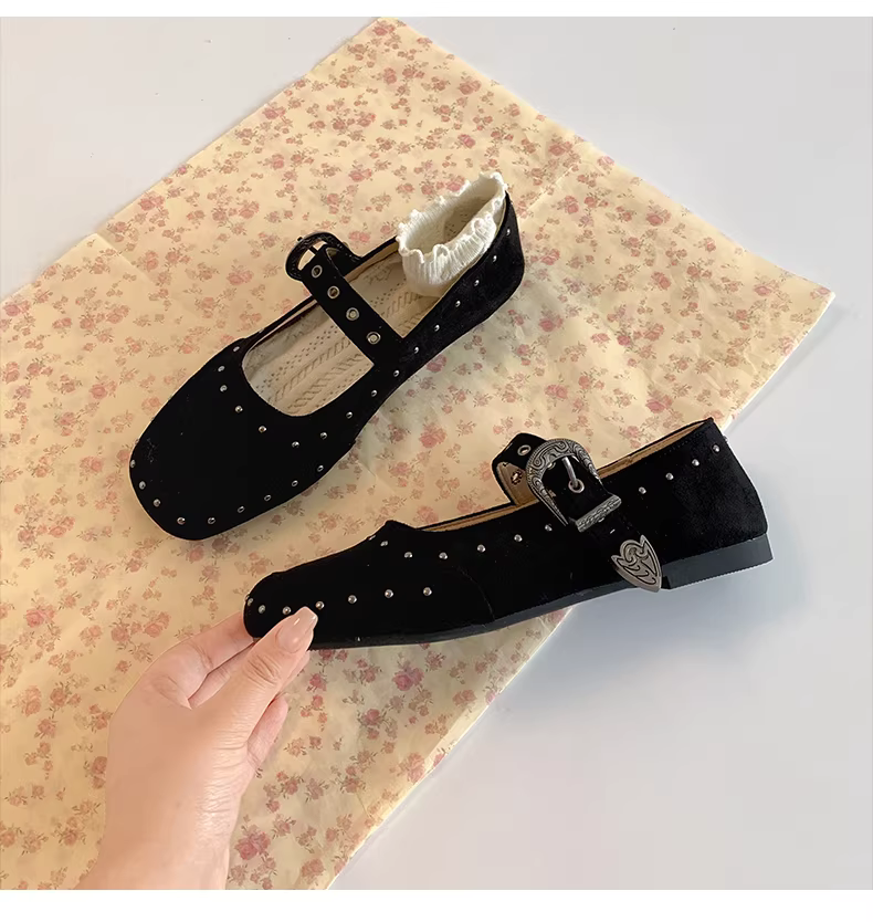 - Giày bệt cổ thấp Nanzai Nanguan màu đen cổ điển dành cho nữ, kiểu thu mới 2025, phối chân váy, đế mềm, kiểu Mary Jane