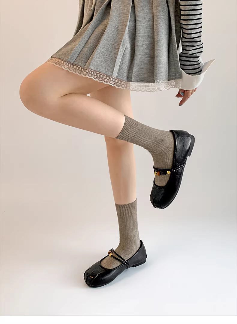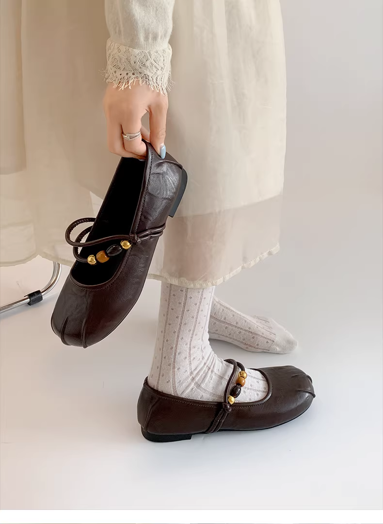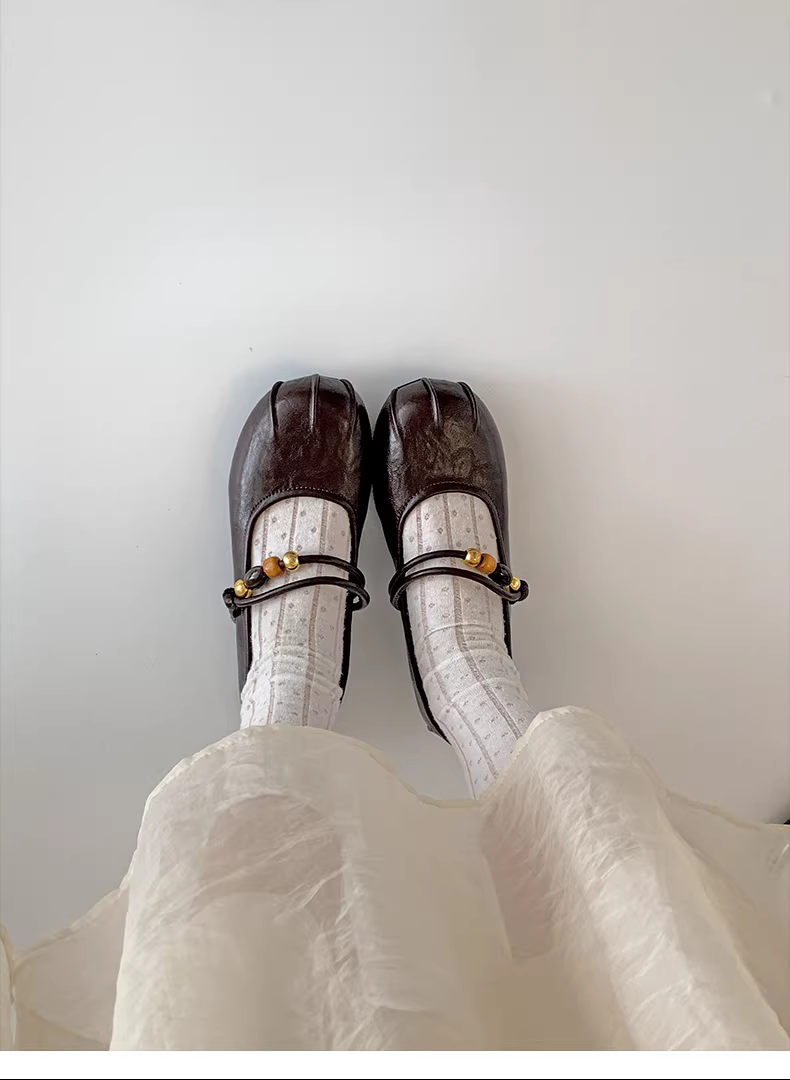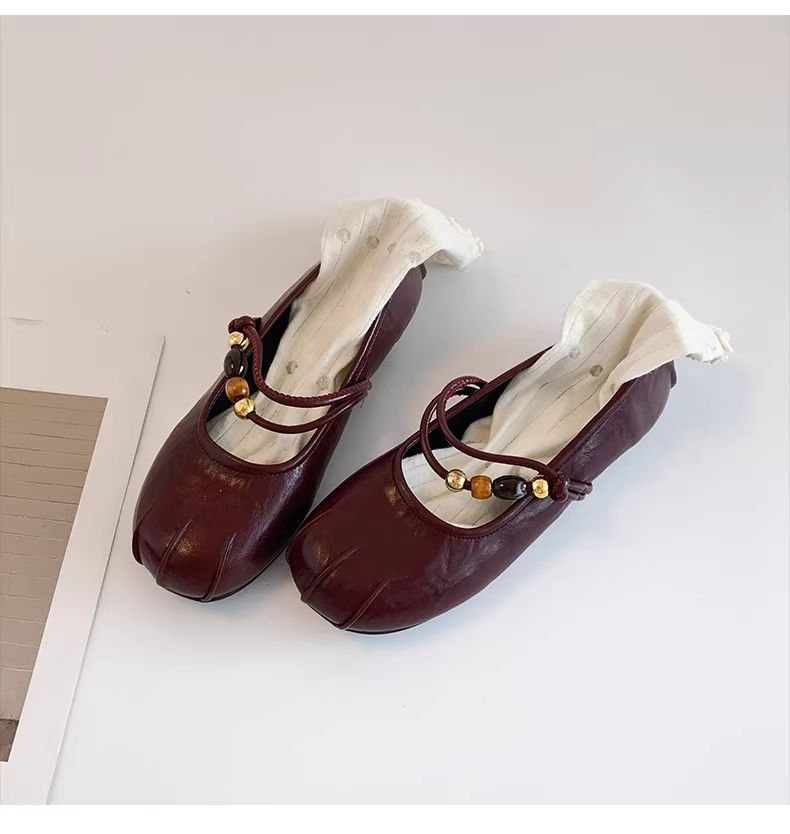 - Giày bệt đế xuồng kiểu Pháp màu đen mũi tròn dành cho nữ, mẫu mới thu đông 2025, đa năng, kiểu retro Mary Jane.