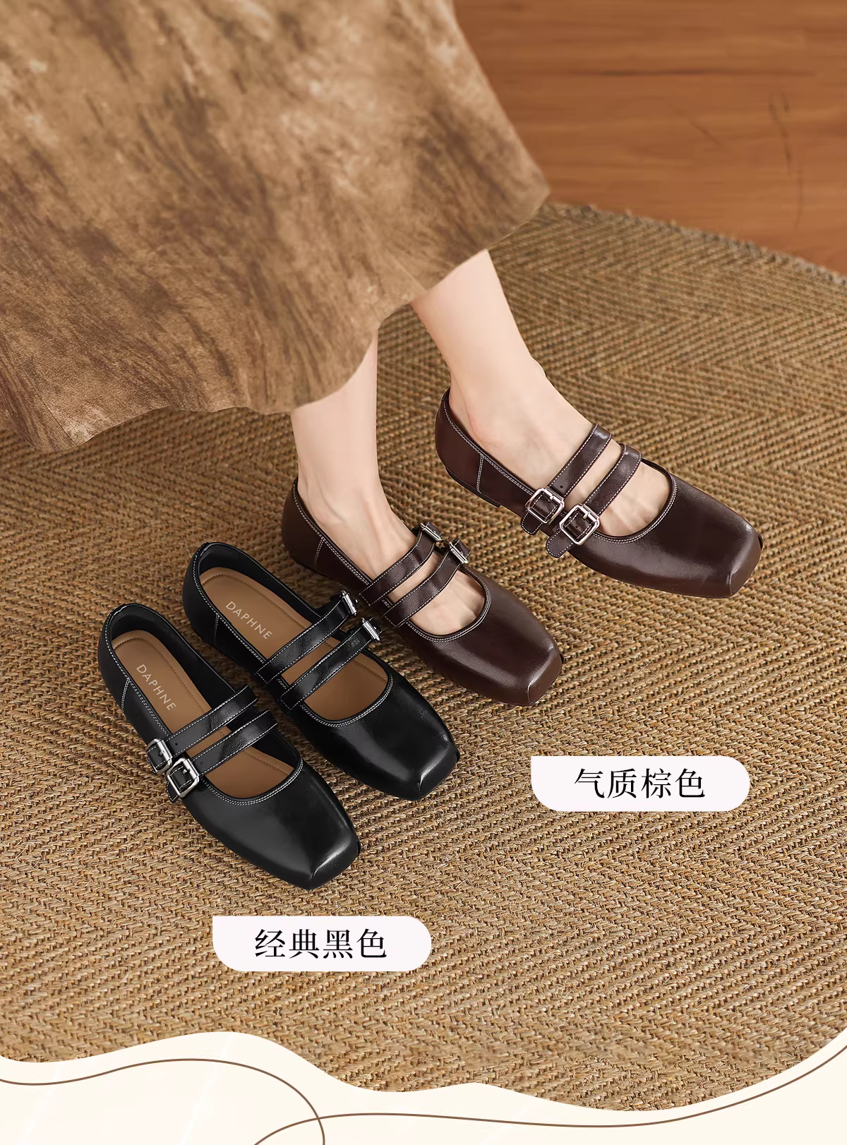 Giày bệt đen Daphne dành cho nữ 2025 kiểu Pháp mới mùa thu, giày công sở kiểu Mary Jane bằng da