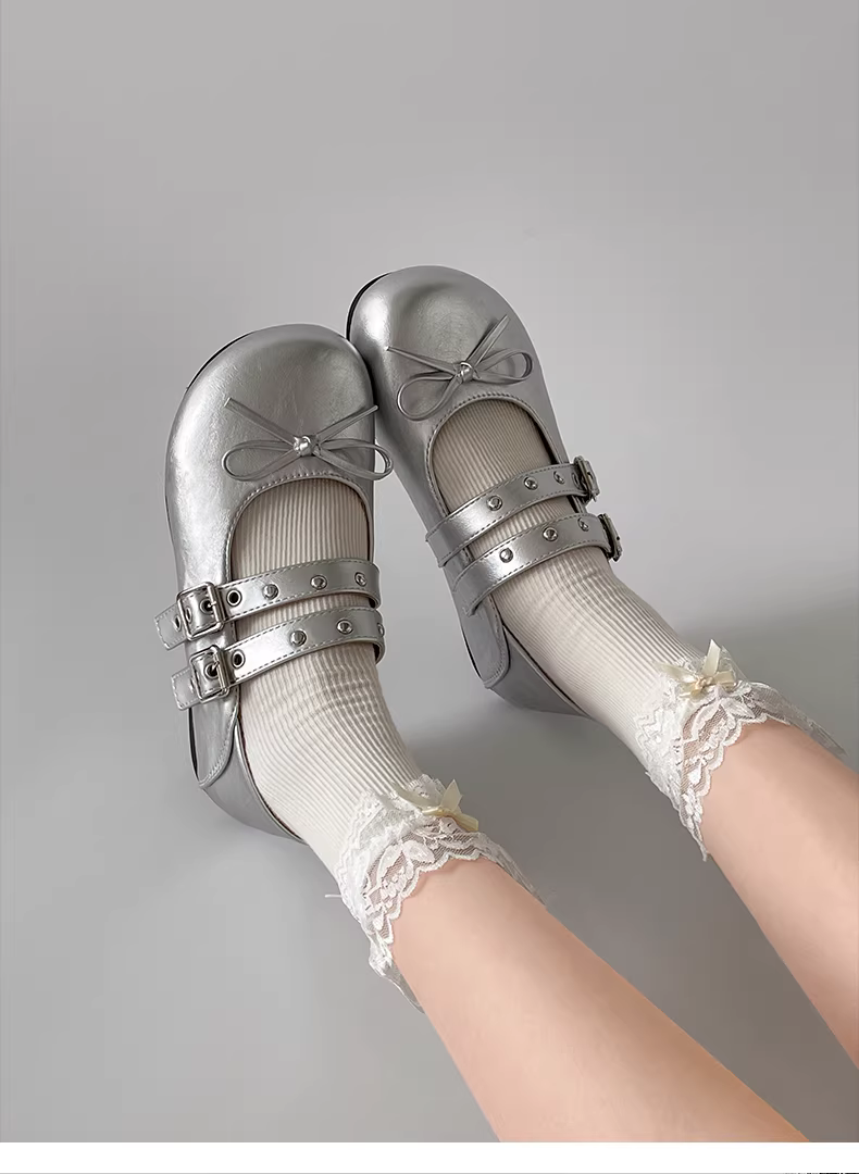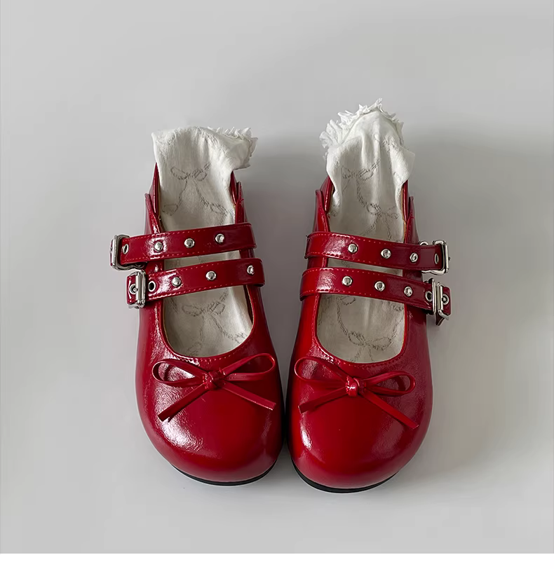 - Giày bệt kiểu Pháp cổ điển màu đỏ, tăng chiều cao ẩn, miệng giày nông, mẫu mới thu đông 2025 dành cho nữ, giày Mary Jane đa năng phối cùng chân váy.